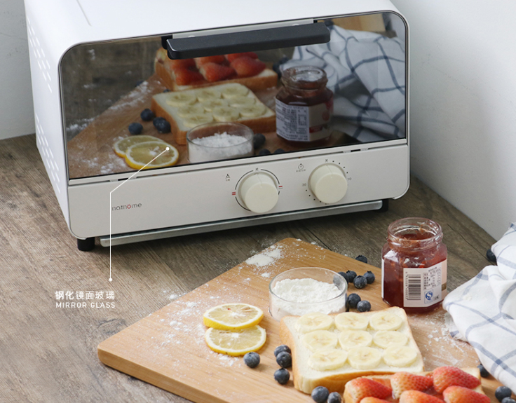 欧慕的这款设计是很明显的北欧风,简化外观的同时丰富了简约至上的内涵,外面的生活已经不易,回家的时候自然是越简单越好啦。烤箱采用了横握式结构,更大化利用容积,节省了空间;四段档位调节,细致划分,可以按需选择;外部的钢化镜面玻璃,高级还有质感,还能随时观察到内部食物的情况;上下火独立控制,更灵活。
