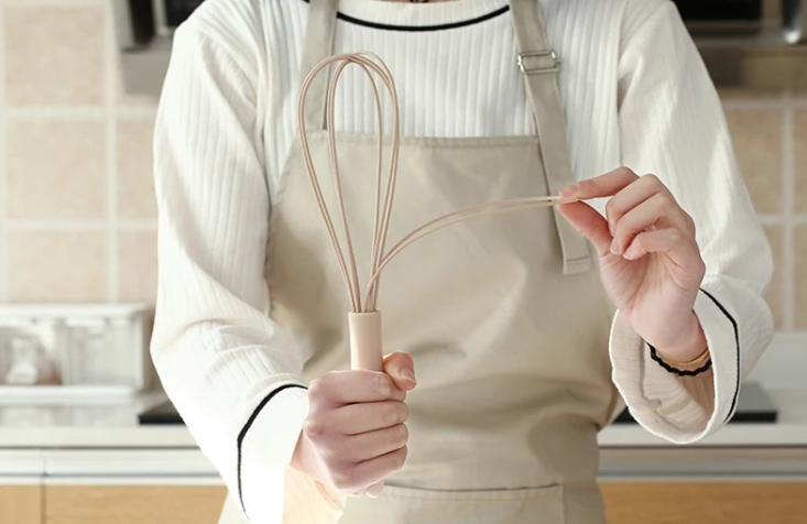 这个搅拌器是硅胶+不锈钢材质,内部钢线均匀分布,外部则是全硅胶材质,抗腐蚀还不伤器皿,加大打蛋头设计,接触面大,能实现高效打发。整体的柔韧性很好,拉开可以做到快速还原。人性化手柄,抓握非常舒适。