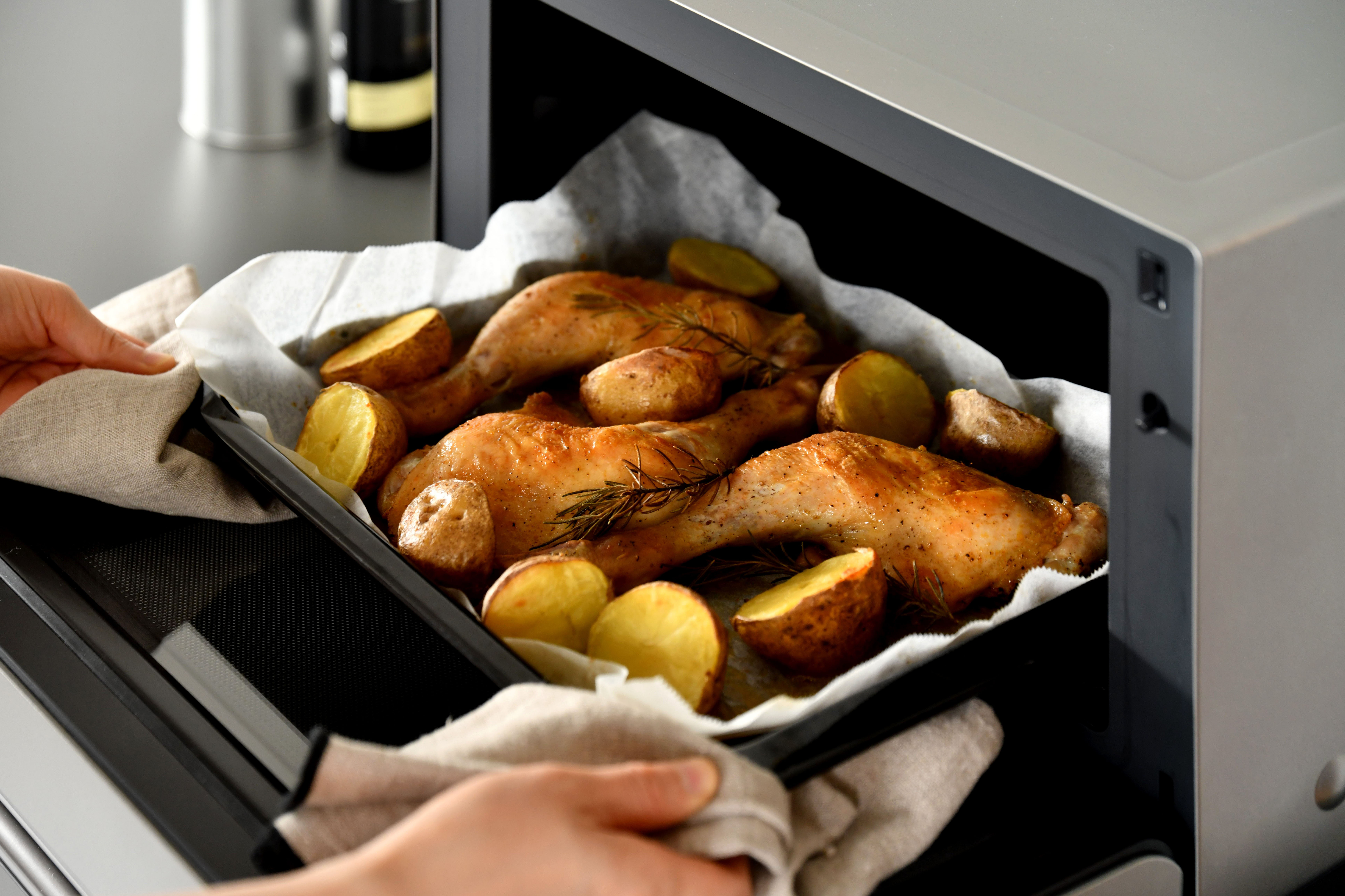 微波功能方面自动模式:可加热米饭、菜肴和便当;手动模式:可加热常温或冷藏的食物、汤品;饮品模式 :可加热常温或冷藏的牛奶、咖啡等饮品。冷冻米饭模式:可加热冷冻米饭;解冻模式:对冷冻食品进行解冻或半解冻;烤箱模式则可实现10°C为单位调整,选择100-230°C的温度进行烘烤, 也可设定预热或以40°C进行面包发酵,同时还附送烤盘,只愿为你带来更多的料理尝试。