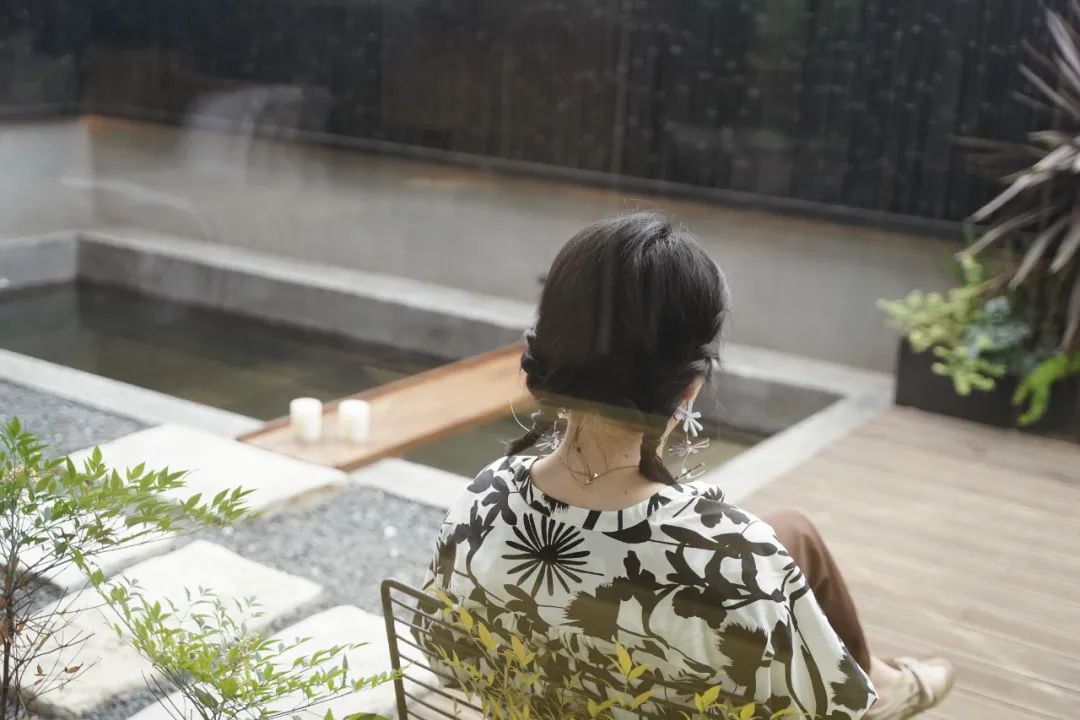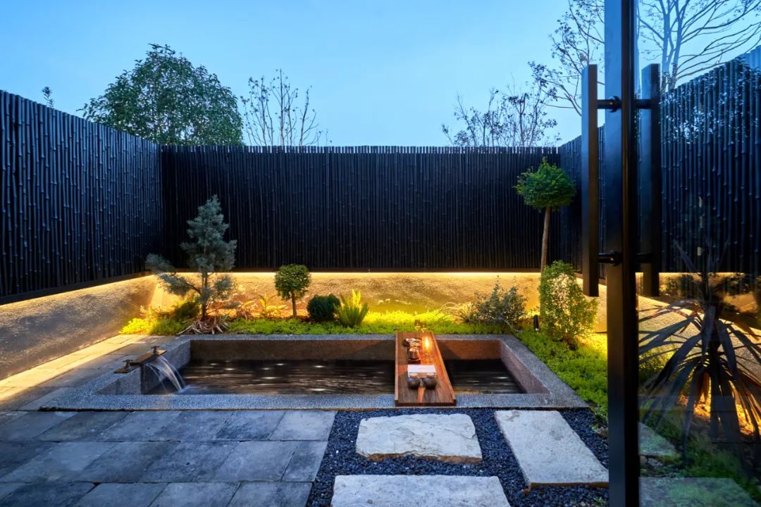 值得一提的还有那栋中式建筑中的庭院泡池房,上下两层的布局设计,起居室、卧室互不打扰。而在庭院中,还有专属的户外泡池,独享这一片自在的小天地。