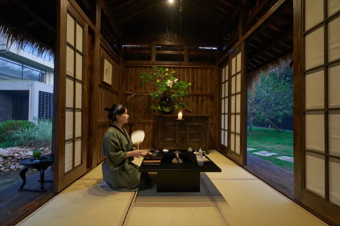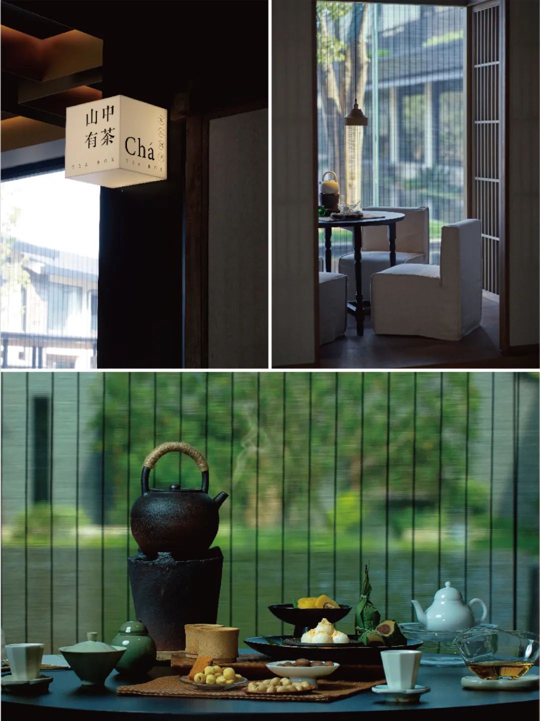 2天的入住时间,从起初进入到建筑空间中的“欲扬先抑”,再到真正步入到民宿庭院中,流连于回廊水景、草色竹海的闲适自在,最后在茶文化的体验中逐渐变得平静。