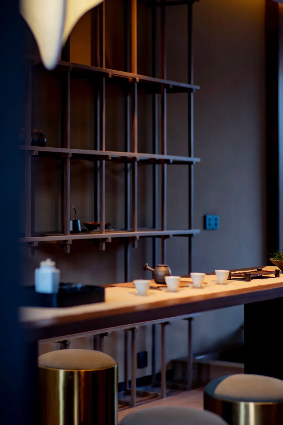 当你坐在茶室里,茶叶氤氲芳香,园林水景倒映宋式建筑,联合小空间带来的包裹感,自然流露出偷得半日闲的避世之感。