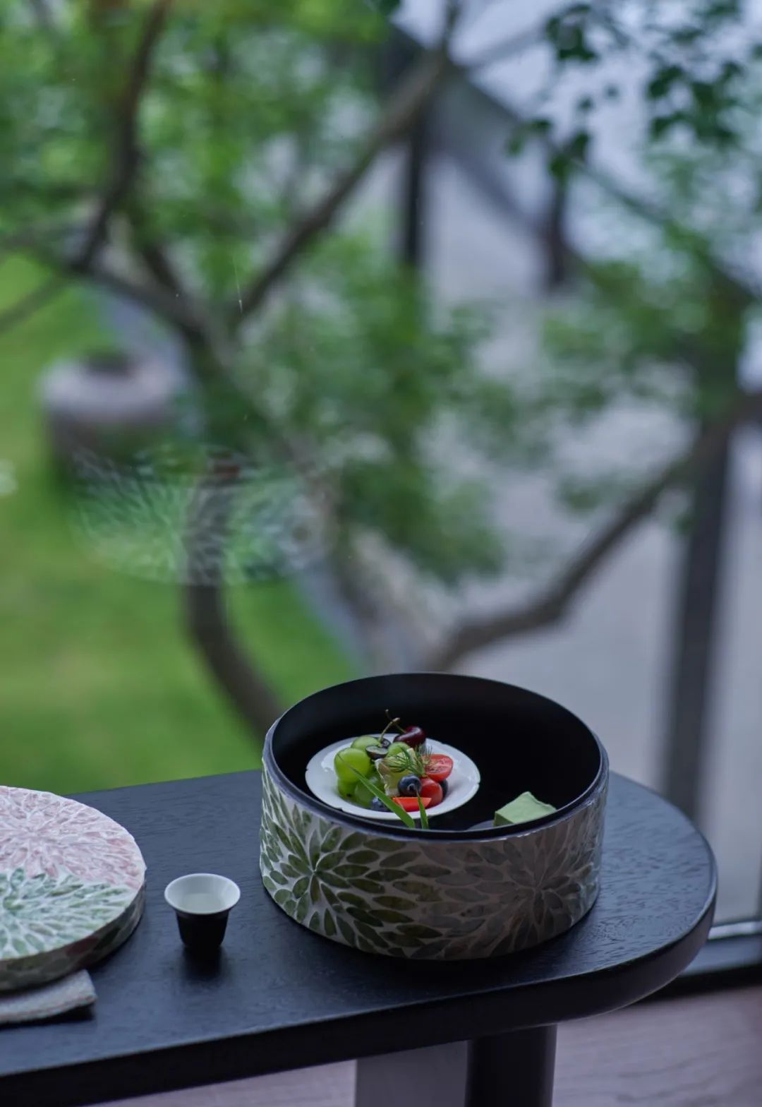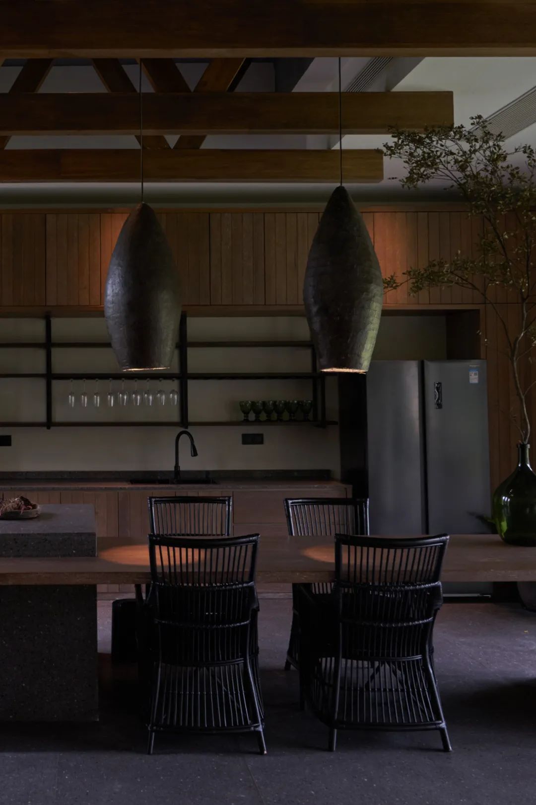 餐厅做了露天天井、全屏落地窗,把窗外光线、竹林水景统统引入室内。所以,即使你坐在室内,你的眼里仍然是“后花园”里亲切的自然光景,心情也就舒畅通透了。