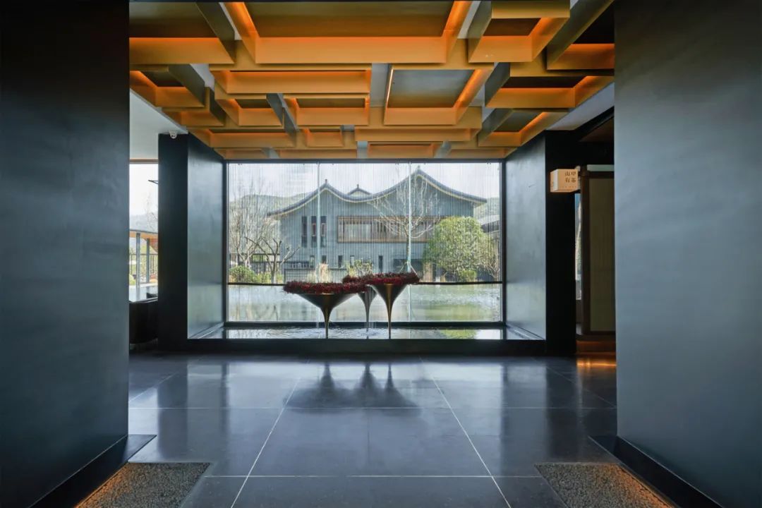 走进内厅,先是被一阵复合花香调浸润,一下将我从自然野趣中,拉到一个通透、明快的现实世界里。厅堂,中庭,连廊,天井等传统建筑元素交错融合,整个内厅如同一首青花淡墨的宋词,旖旎着淡淡的雅致。