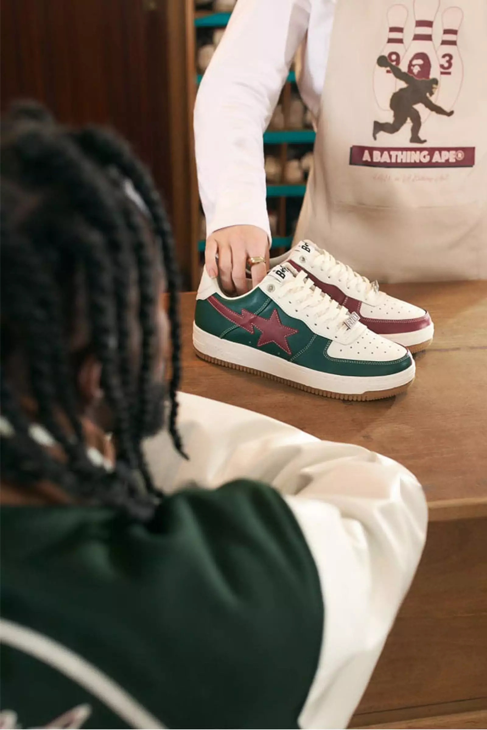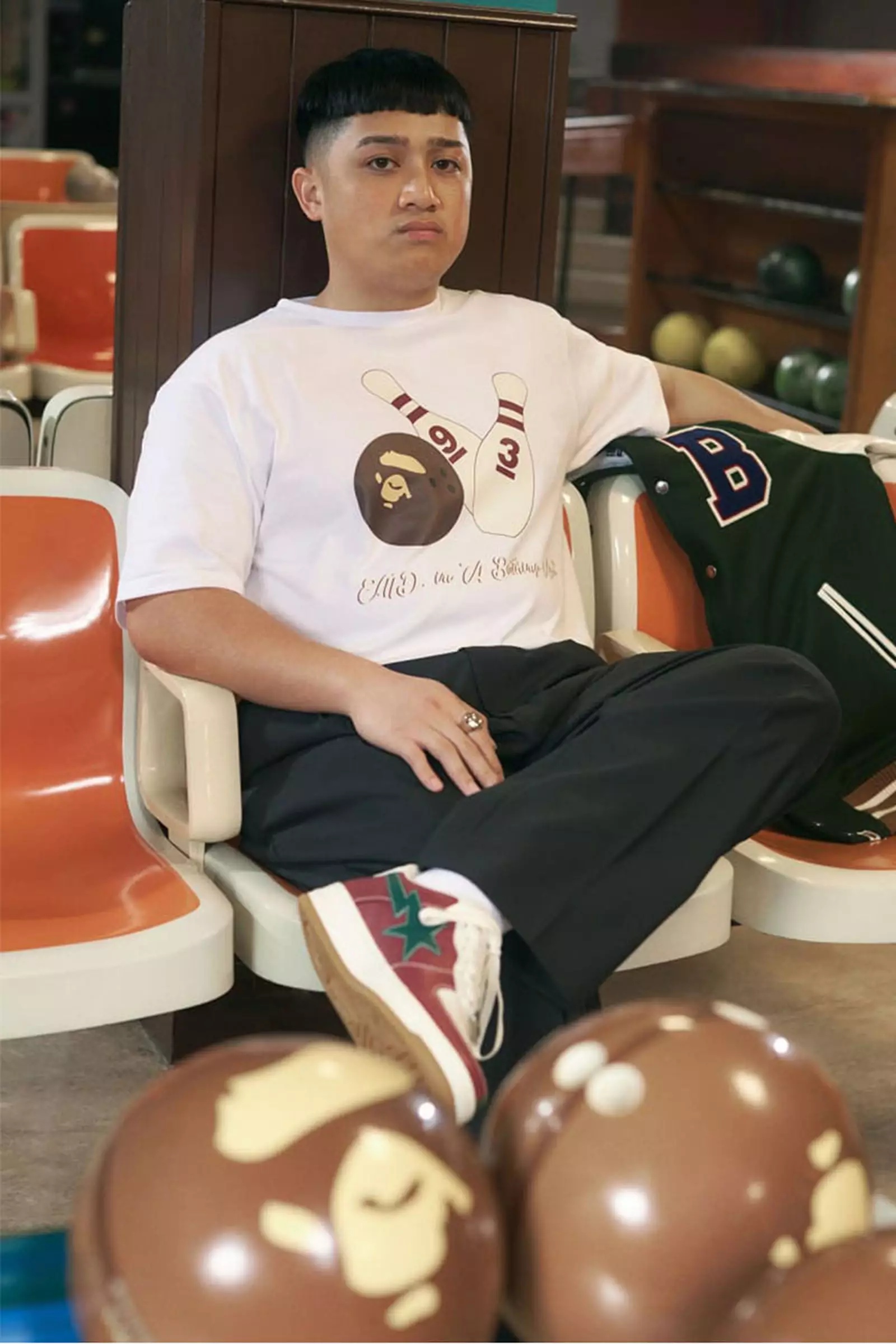 这是 END. 和 BAPE 的首次合作,灵感来自复古美式风格和保龄球带来的乐趣。胶囊包括服装、鞋类甚至还有保龄球&木瓶组合,体现的是两方对复古美式风情的理解以及热爱。首推款是一件校队夹克,堪称“终极保龄球制服”,采用双色羊毛和皮革制成,延续的是纯粹美式学院风,胸口有字母 “B” 贴花,背面则是联名刺绣图案及字样;除了几件满载安逸猿经典元素的 T 恤外,以保龄球鞋为缪斯打造的 BAPE STA 也非常耀眼;当然点睛之笔属于定制款保龄球(带握孔),以极具 BAPE 辨识度的猿猴图案呈现,给人留下深刻视觉印象。据悉,这个系列将在 12 月 3 日起于 END. 官网发布。