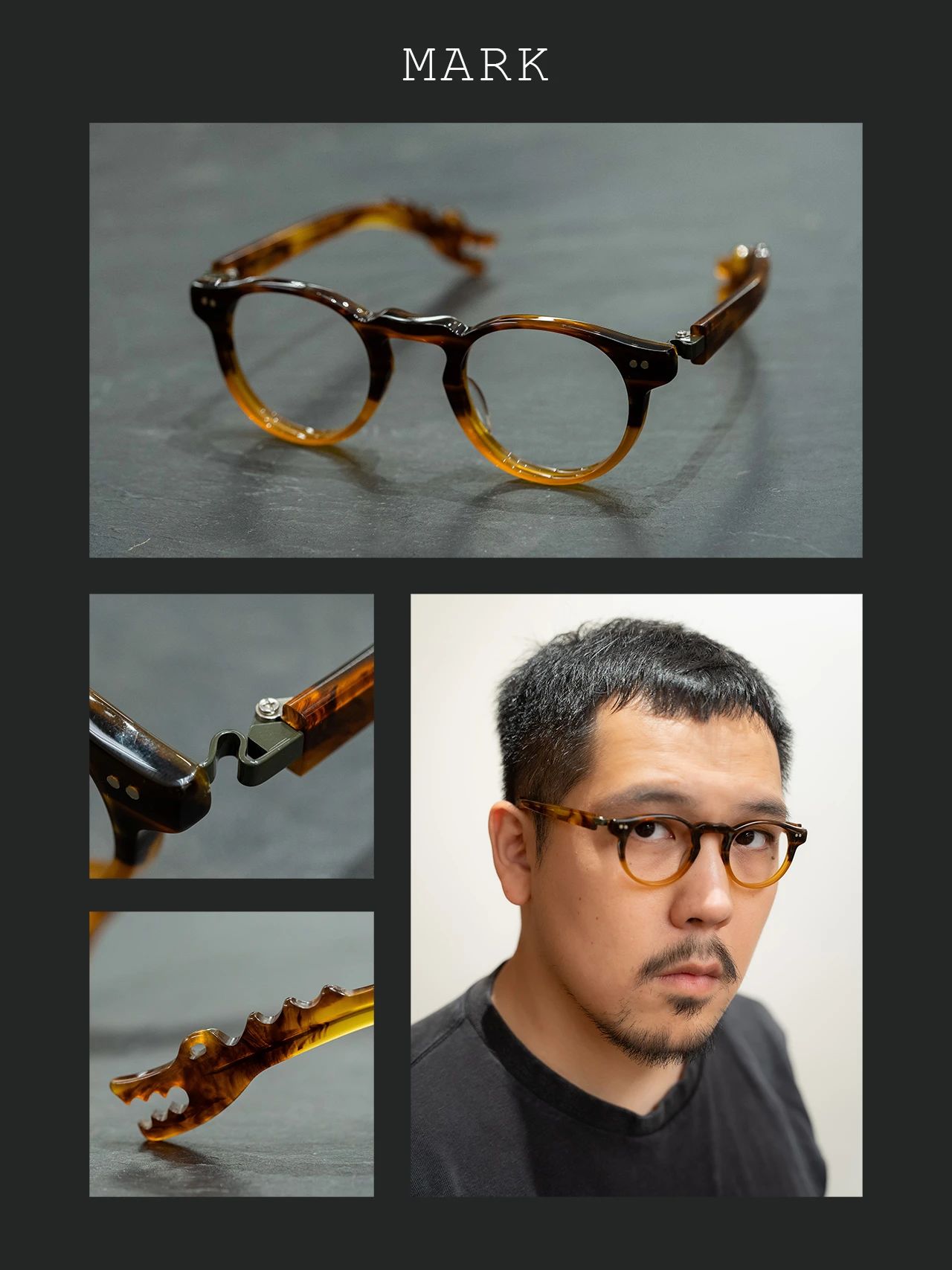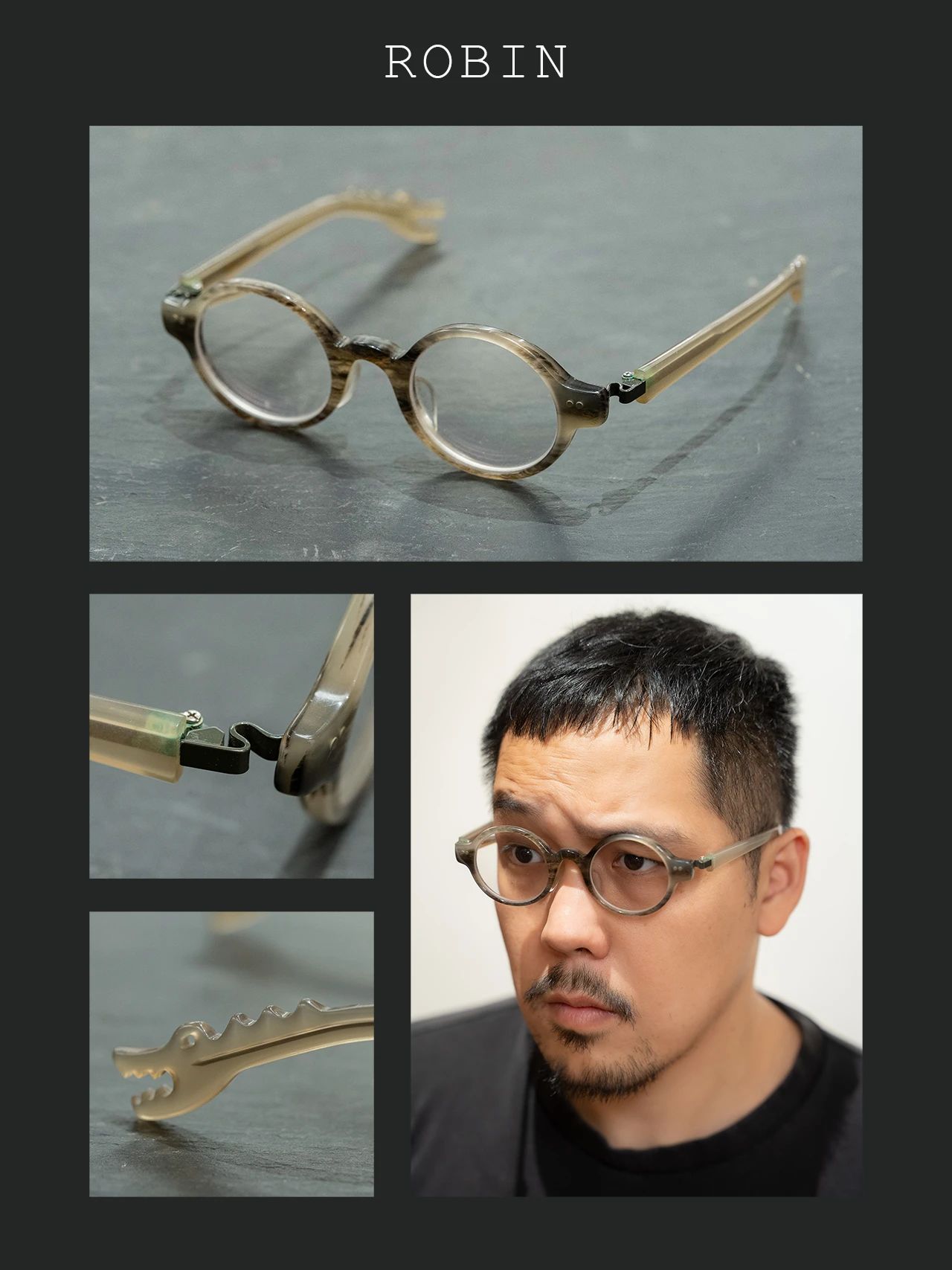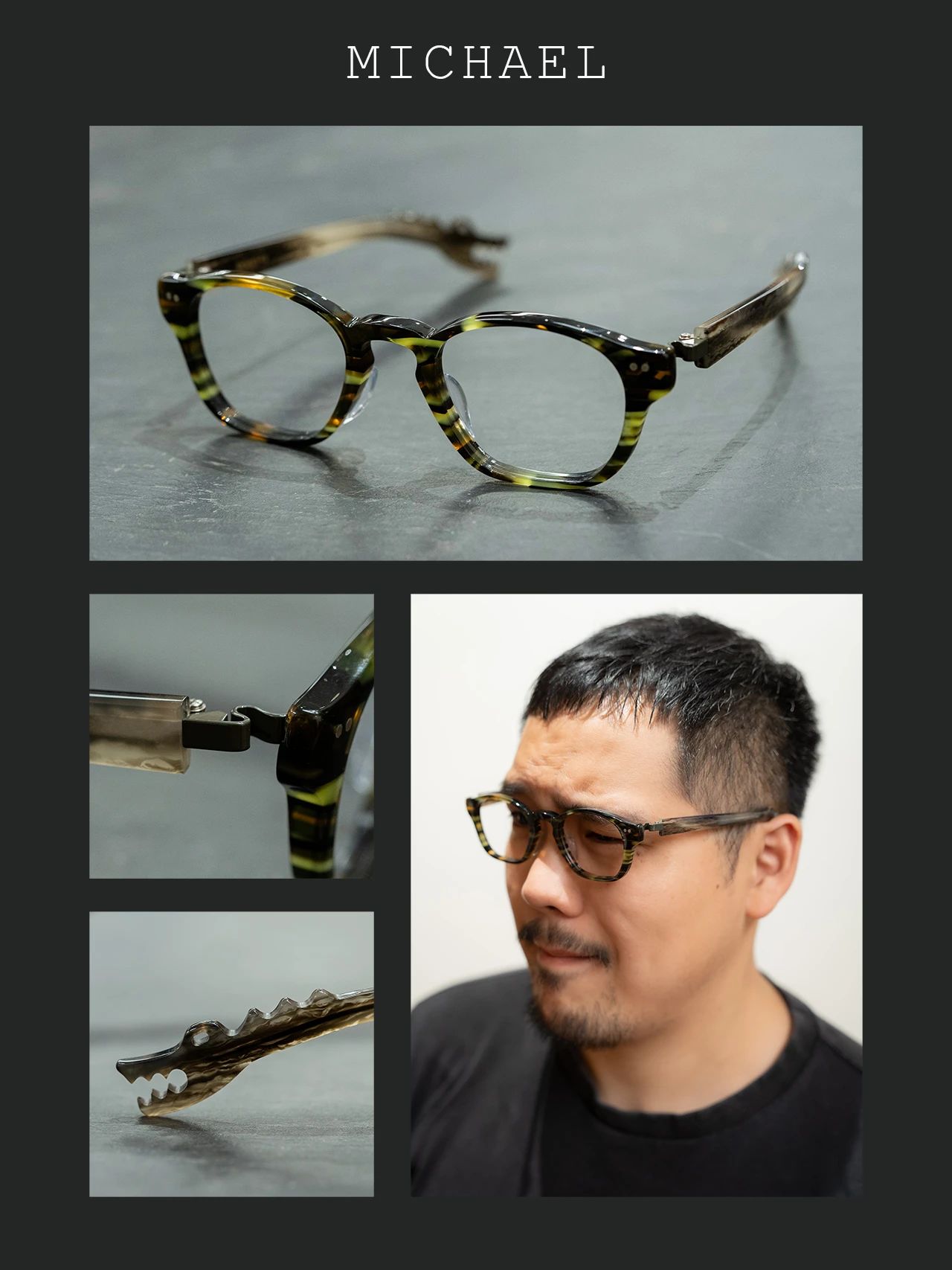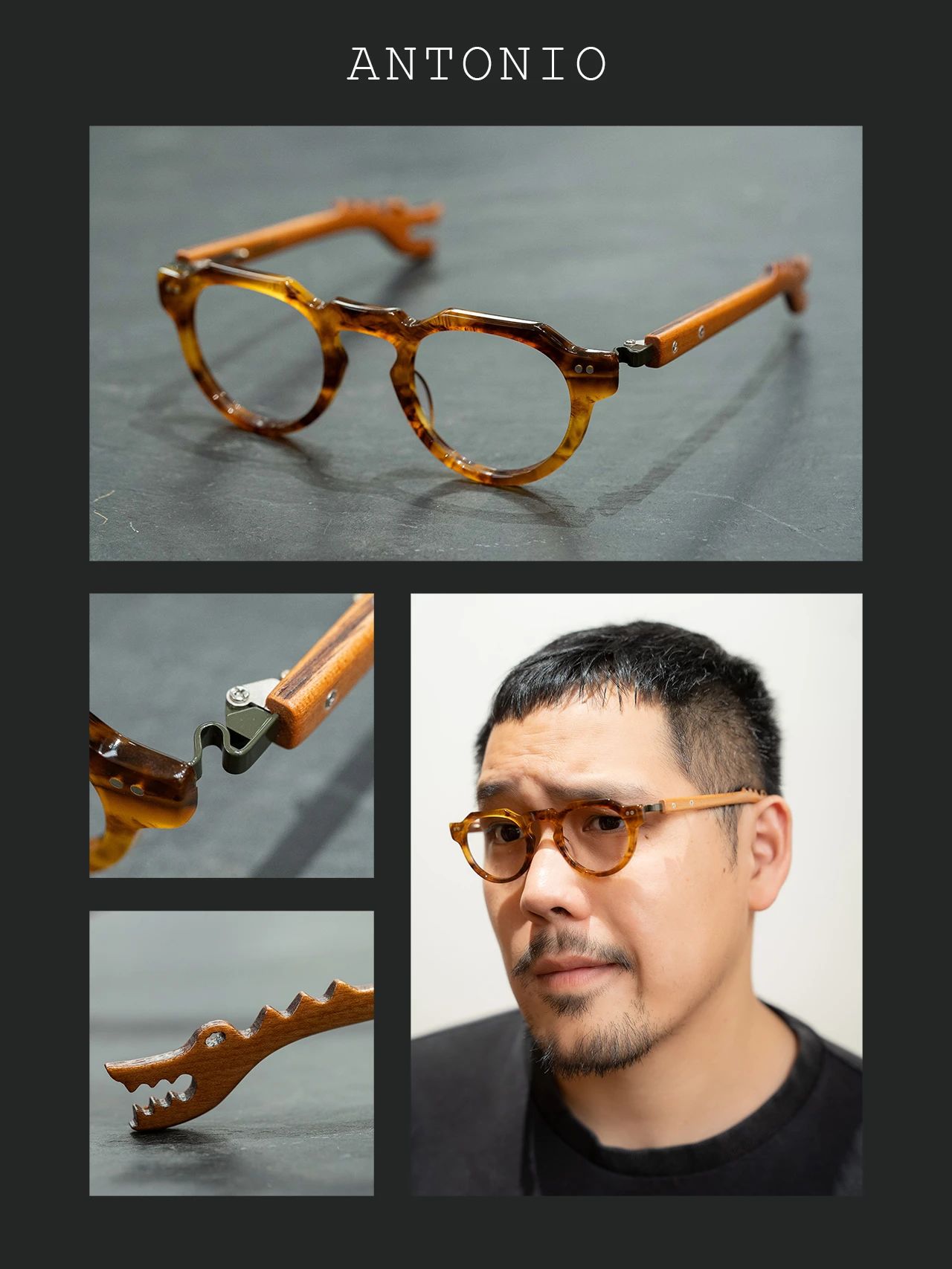 而这一期的上架主要有4款架框和2种镜腿材质的组合。镜框有Robin、Antonio、Mark和Michael,镜腿则都是Dino小恐龙的样式但有醋酸和樱桃木两种材料。