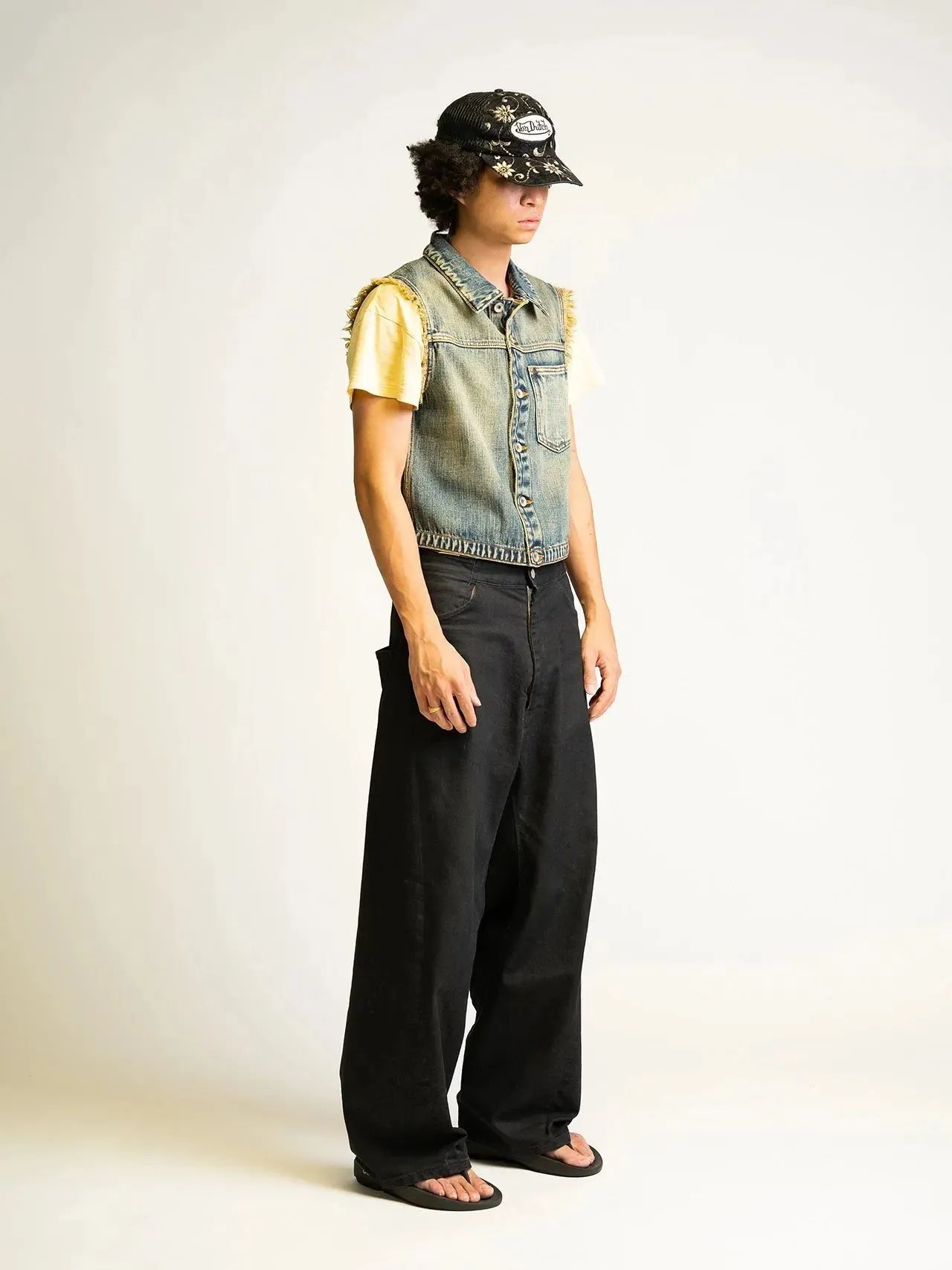 继去年夏天的黑丹宁之后,RBHL的丹宁系列于今夏再度回归。这次的DENIM PROJECT Lot.3依旧沿用由RADIANCE-Blue自主开发的Broken Twill Selvedge Denim面料,在这种纱线相互交错的布料上再进行水洗的处理。而在款式方面,前两季大受欢迎的Twist Leg和Boot Cut将再度推出,除此之外还增加了两款新的版型,分别是宽松直筒的廓腿裤mega wide baggy和短版好搭的Denim Vest。