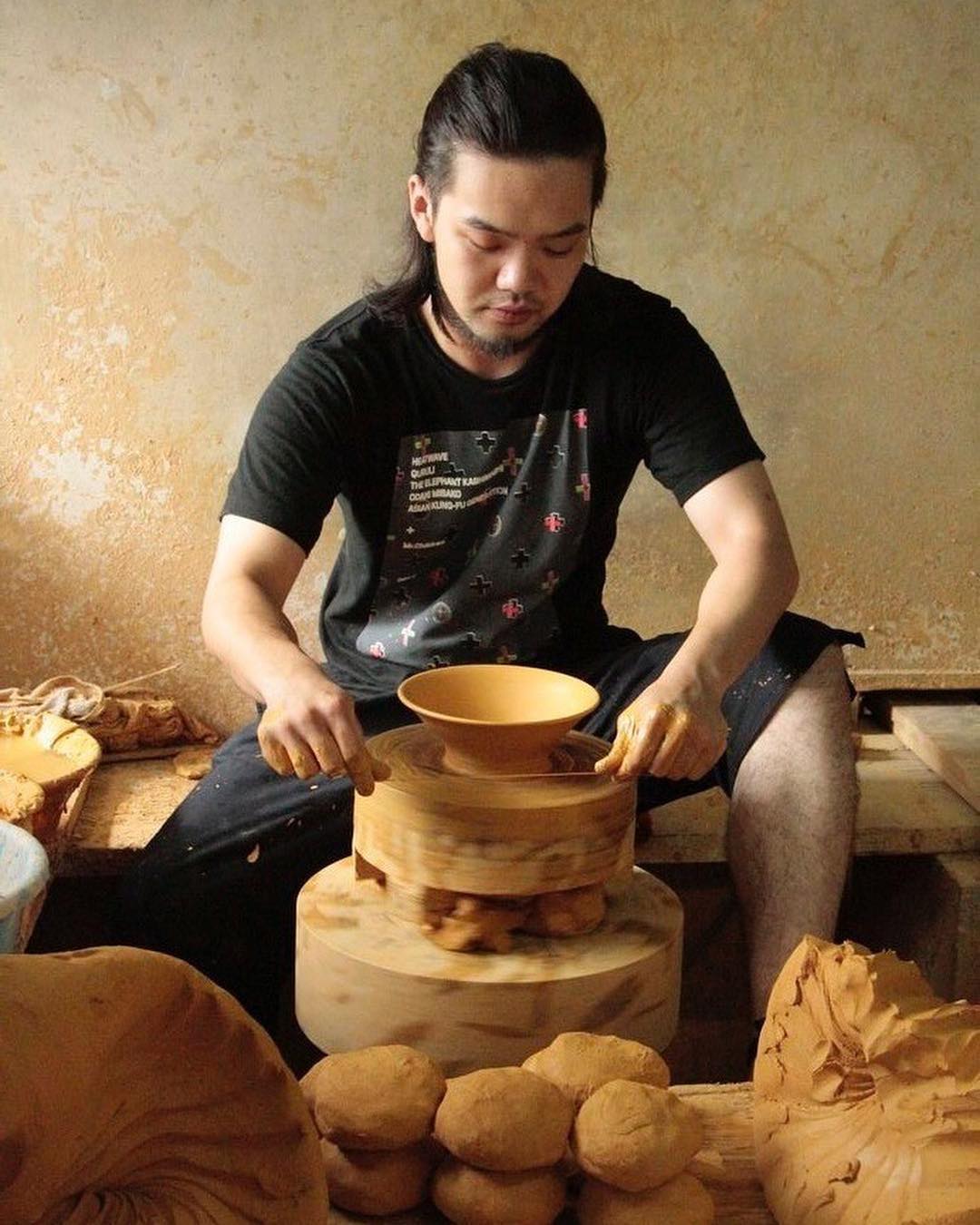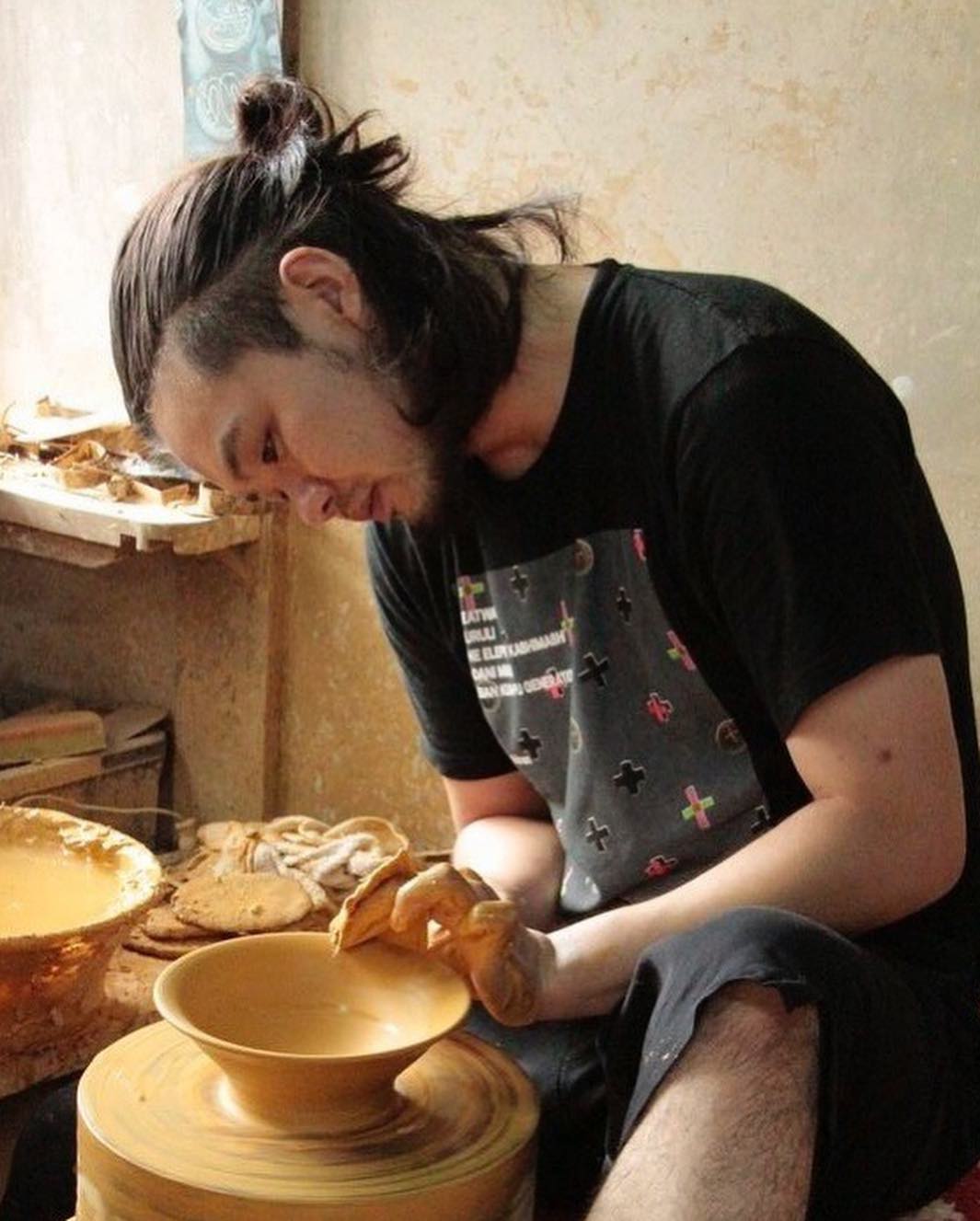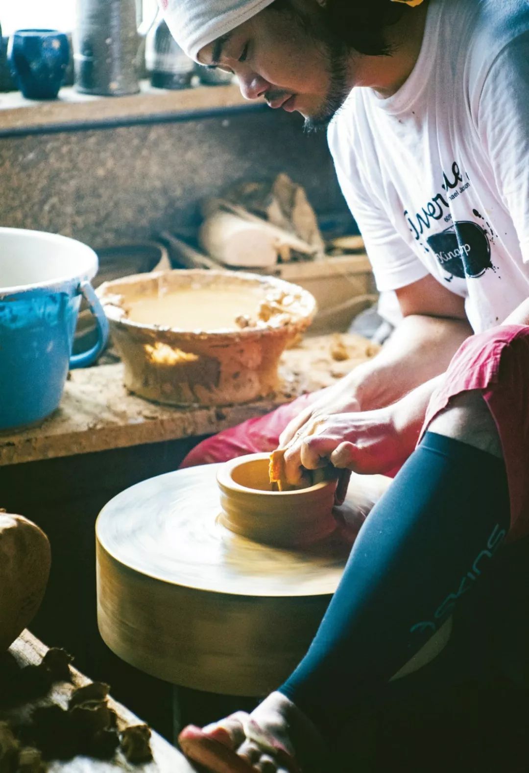 坂本创一直觉得制作陶器是一个与自然万物对话的过程,有时候喝完酒微醺状态去拉胚,反而一个小的失误可能会制作出一件精品。