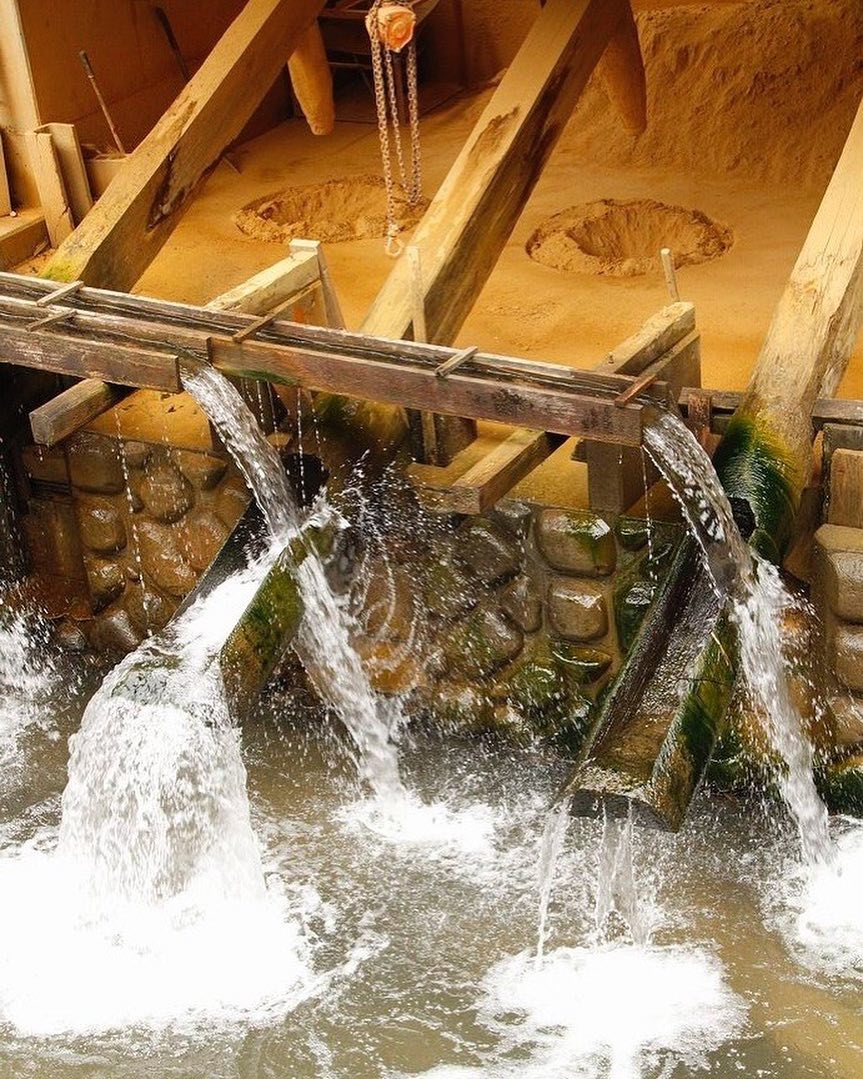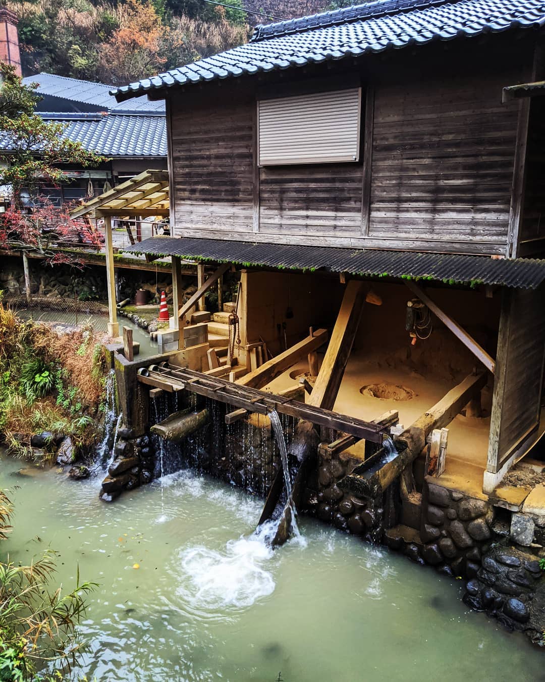 为了将自然之美体现在每一个细节,小鹿田烧采用了天然的“唐臼”法进行陶土的捣碎,让河水流过挖空的木料,然后水满则降,带动木桩对陶土进行反复的敲打。如今这种“唐臼”所产生的声音还被评为“日本音风景百选”之一。