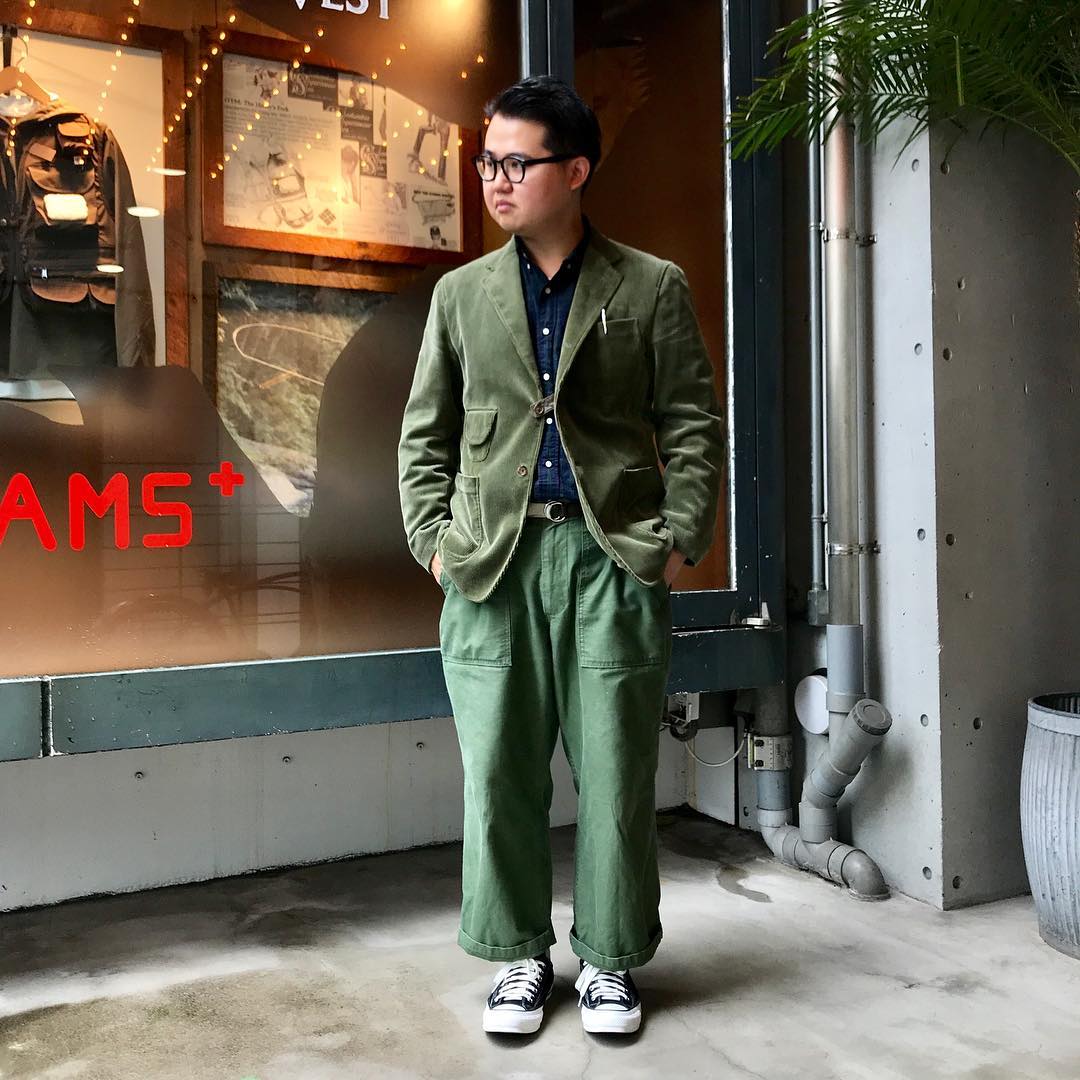 同样绿色军裤或者Chino也是各位男士的最爱,藤井洸太在驾驭这些绿色长裤的时候,除了我们较为常见的牛仔外套搭配穿法之外,还会利用不同风格的西装夹克、领带去进行诠释。此外如果大家仔细观察的话,就会发现他很少去做颜色对应的大众流行穿搭方式,毕竟这样太过初级。所以选好主色调之后,不妨升级一下,让自己做个有品且有趣的男人。