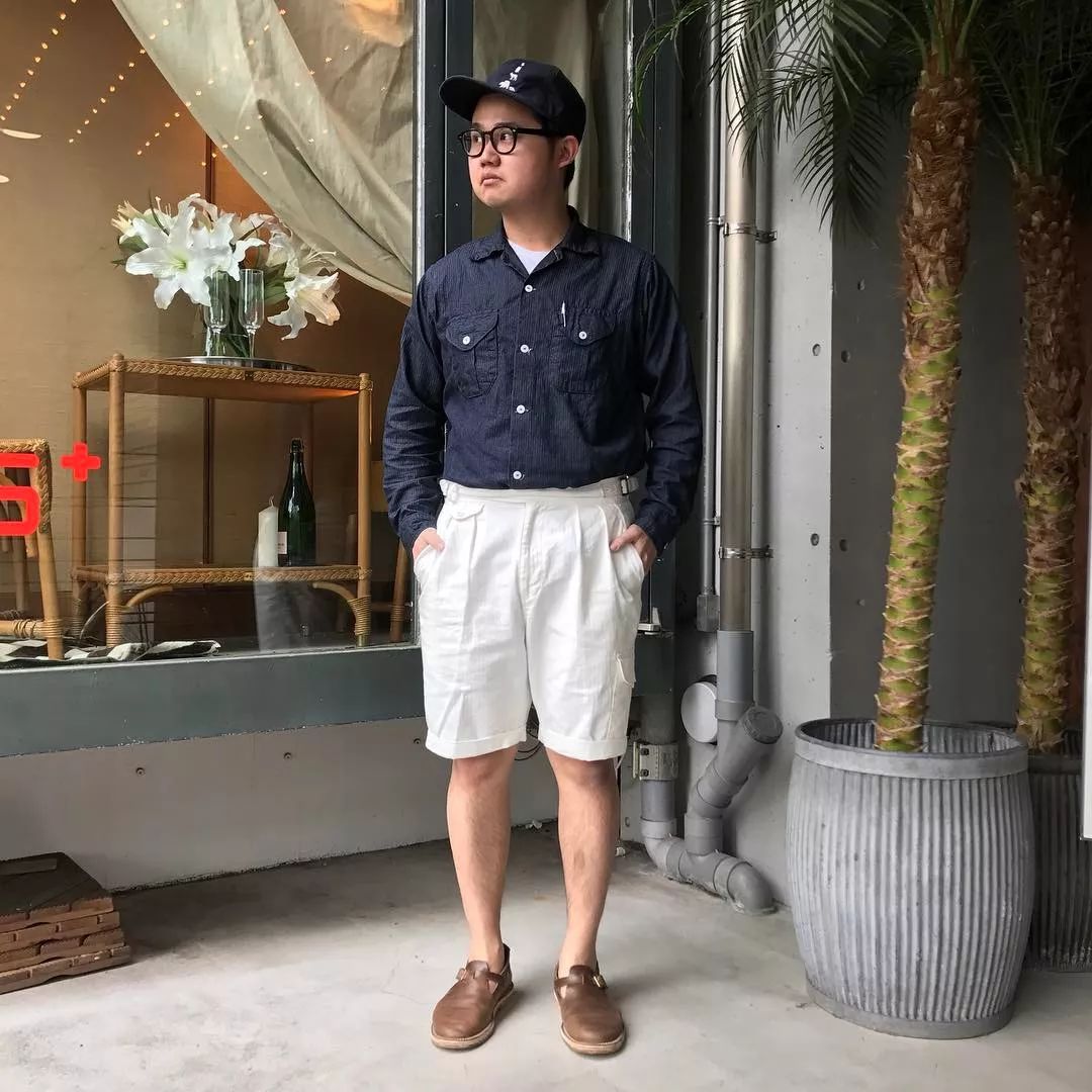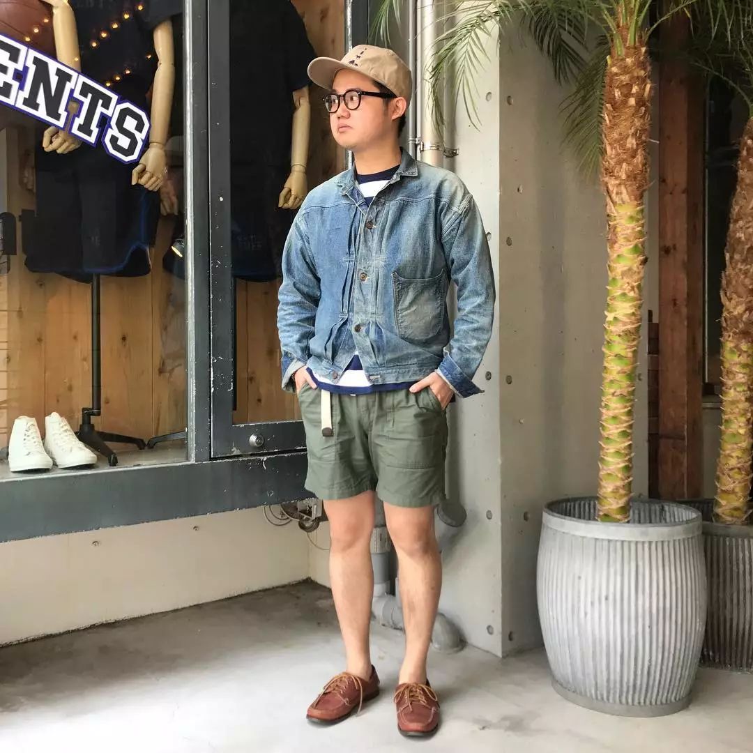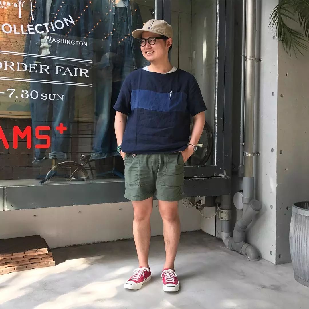 我们在之前的文章也聊过夏天的穿搭比起冬天其实更难,原因很简单,因为夏天的衣服过少,所以想要穿出层次感很难,这时候就得靠细节去进行修饰。藤井洸太对于短裤的穿搭风格塑造非常丰富,首先从配色来说他为我们示范了较为常见的绿色、白色、卡其色等。