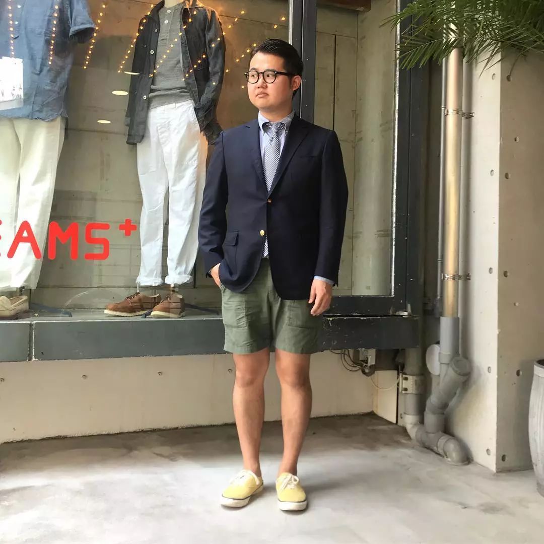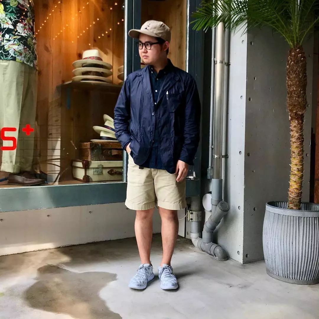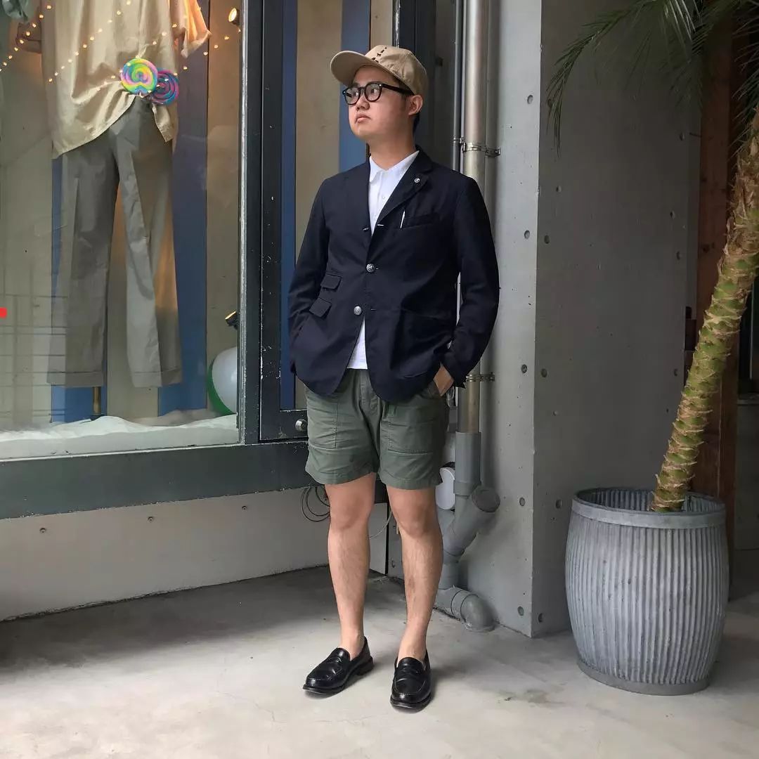 我们在之前的文章也聊过夏天的穿搭比起冬天其实更难,原因很简单,因为夏天的衣服过少,所以想要穿出层次感很难,这时候就得靠细节去进行修饰。藤井洸太对于短裤的穿搭风格塑造非常丰富,首先从配色来说他为我们示范了较为常见的绿色、白色、卡其色等。