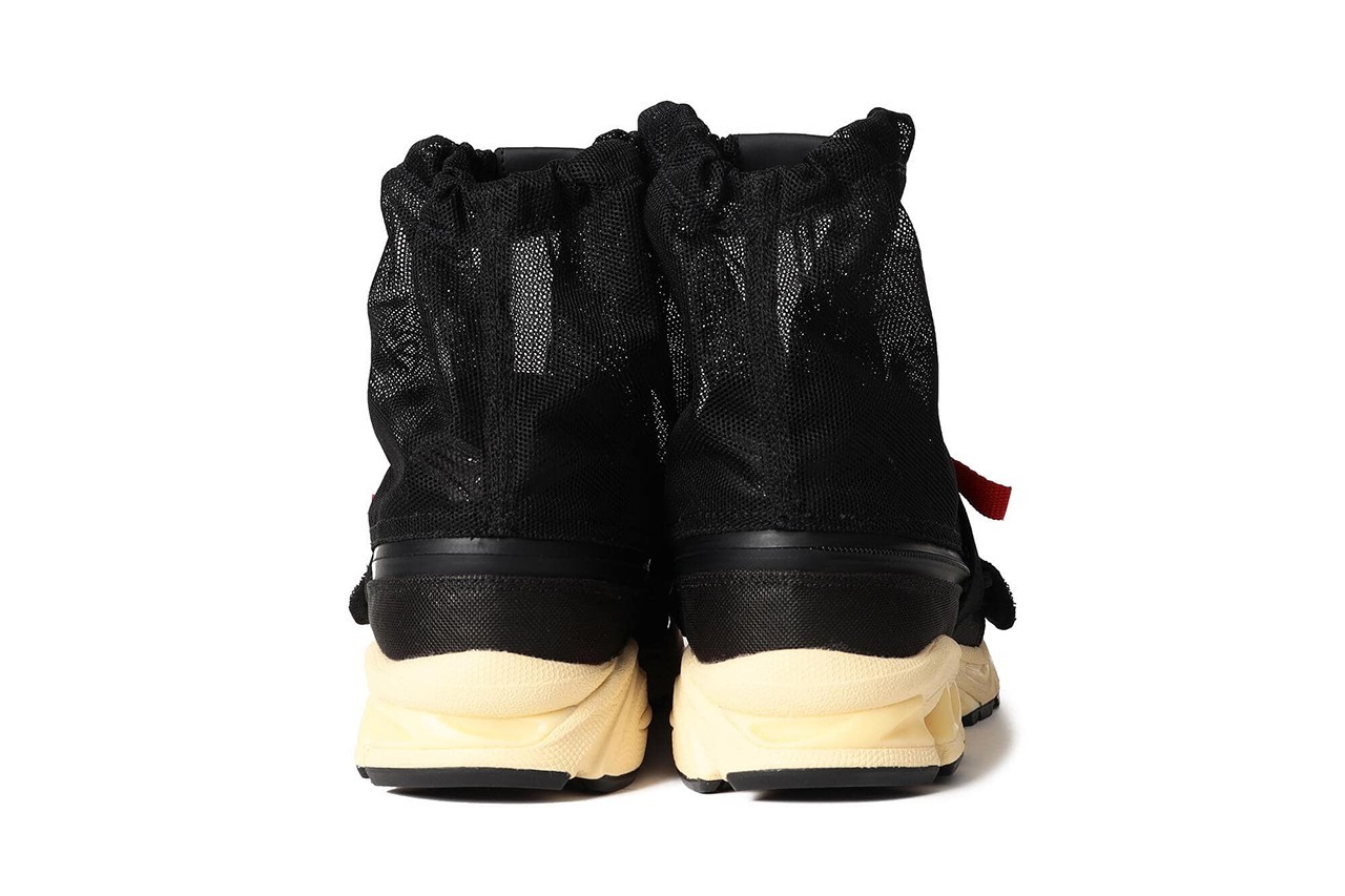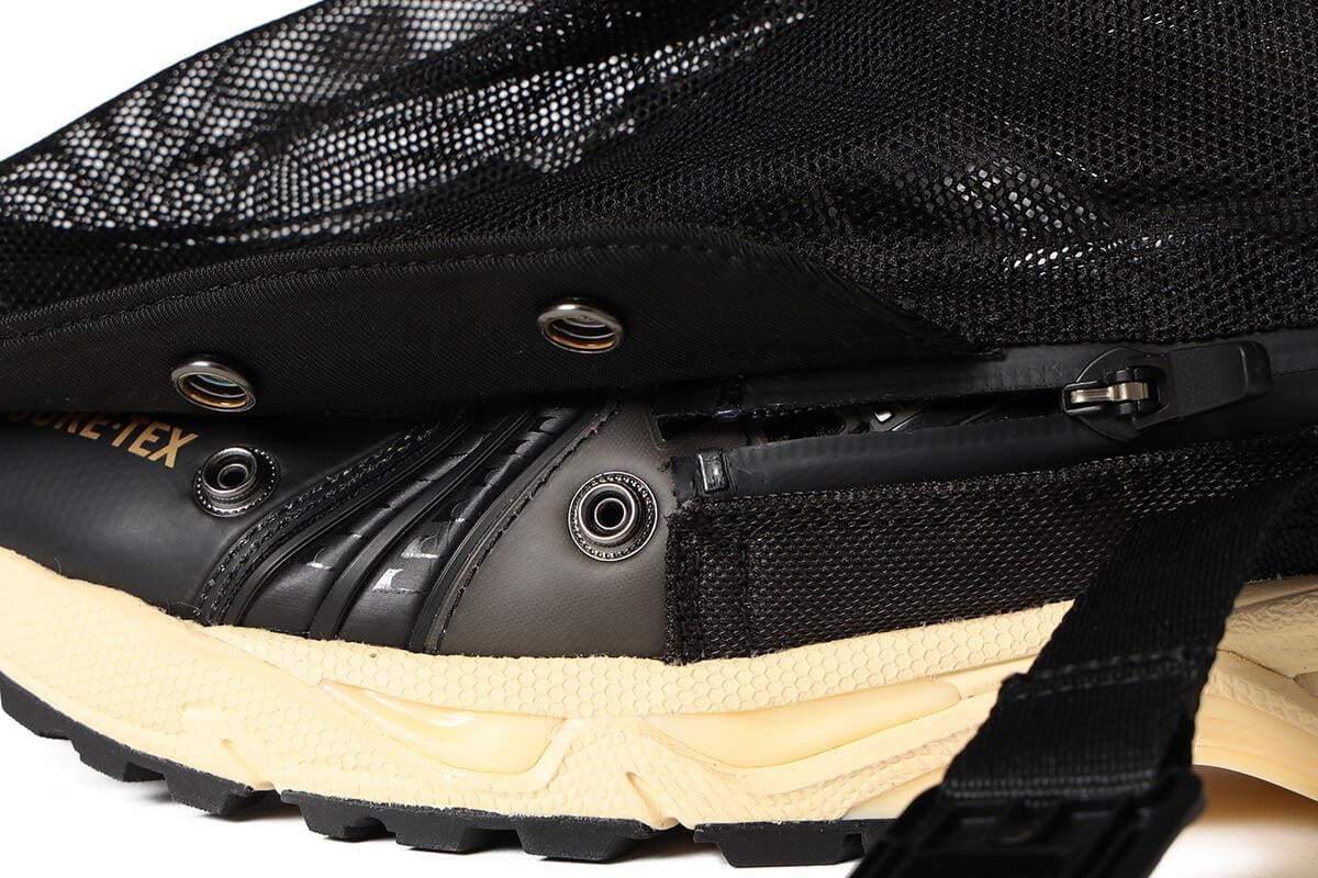 在展现 GEL-KAYANO 14 怀旧风情以及复古跑美学同时,这双限定版还出乎意料为球鞋配备了“蚊帐”(网状护罩)以及特别的 GORE-TEX 保护结构。采用合成皮革制成的鞋面搭载 GORE-TEX 防水层,而鞋头、侧板和鞋跟部位则加持微妙网眼细节。为了增添亮点,BEAMS 还为鞋面增设一组红色织带细节,搭配鞋面的摁扣饰钉以及做旧的泛黄鞋底。其中摁扣饰钉与鞋领处的拉绳用来固定鞋面顶部的“蚊帐”结构,外加 GORE-TEX ,使之足以成为一双能够应对各种环境条件的机能球鞋。据悉,这双特制的 GEL-KAYANO 14 GORE-TEX 将在 10 月发售。
