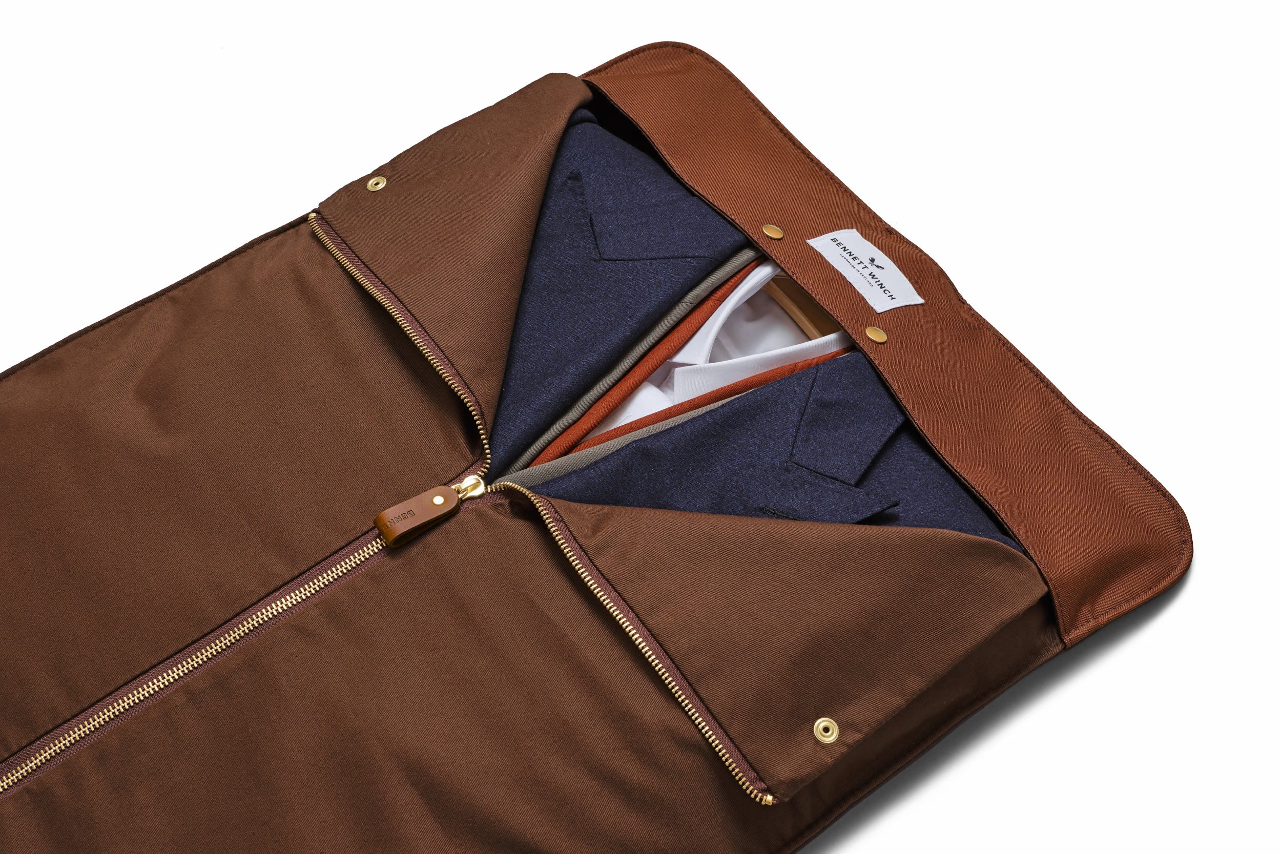 英国知名手工包袋品牌 Bennett Winch 深知时间紧迫、行李繁多人群的苦恼,特别为假日季行程紧凑的绅士们推出一款烟草棕麂皮三折包,简直是没有时间熨烫着装的救星——实现随时随地轻松收纳正装。