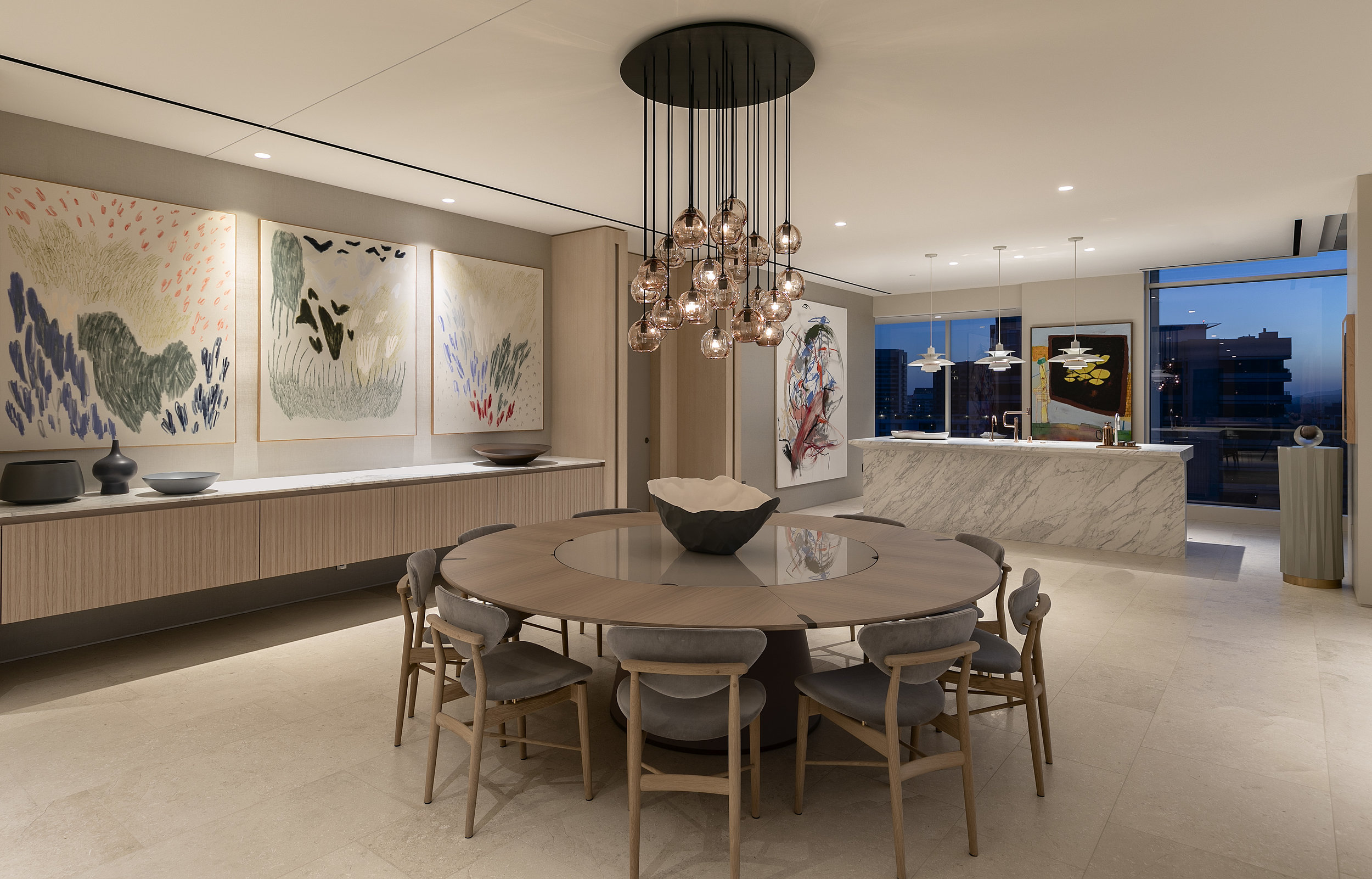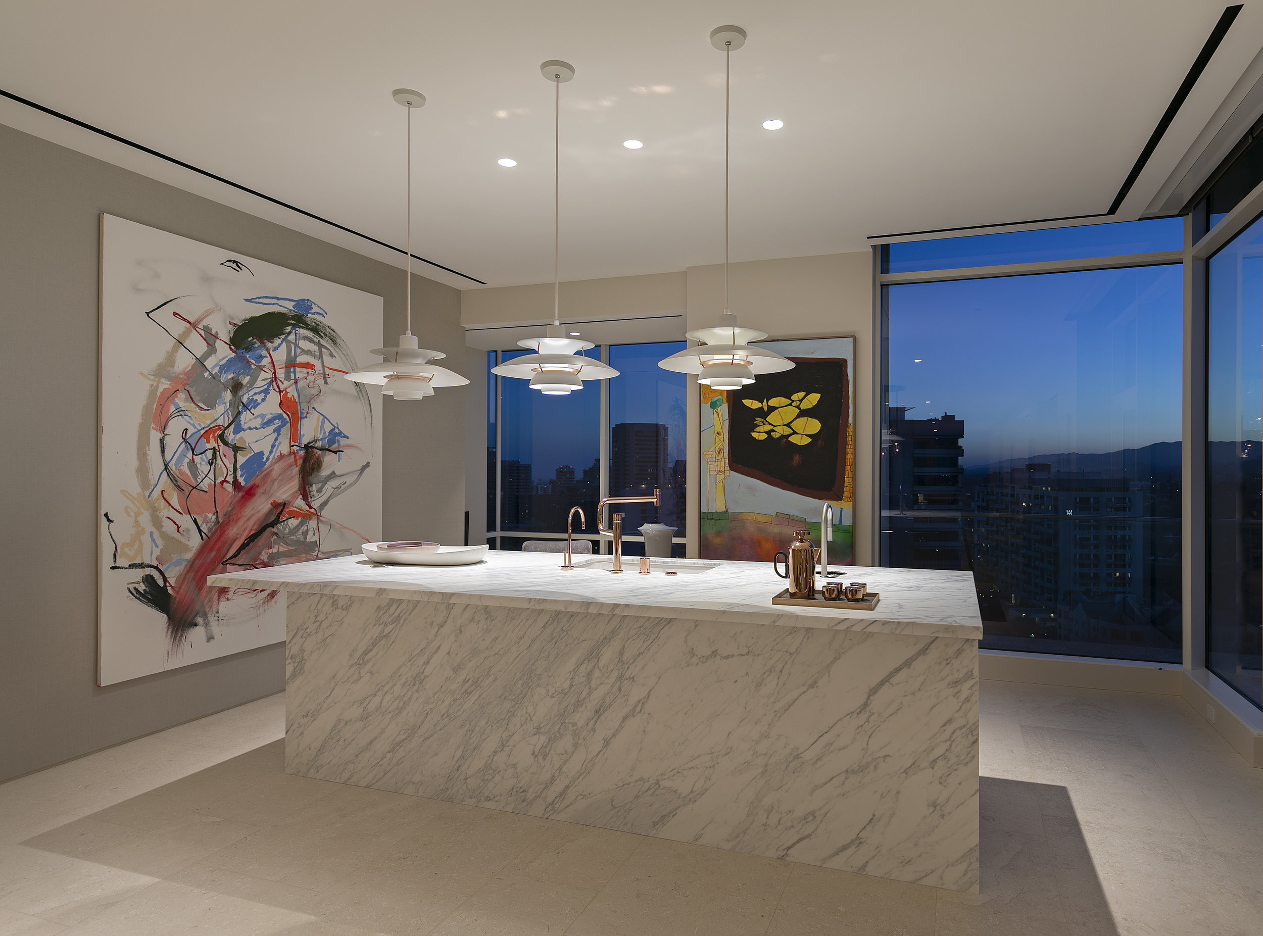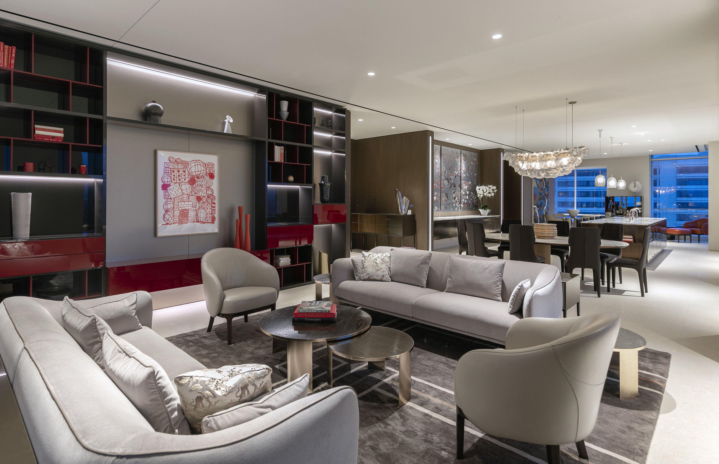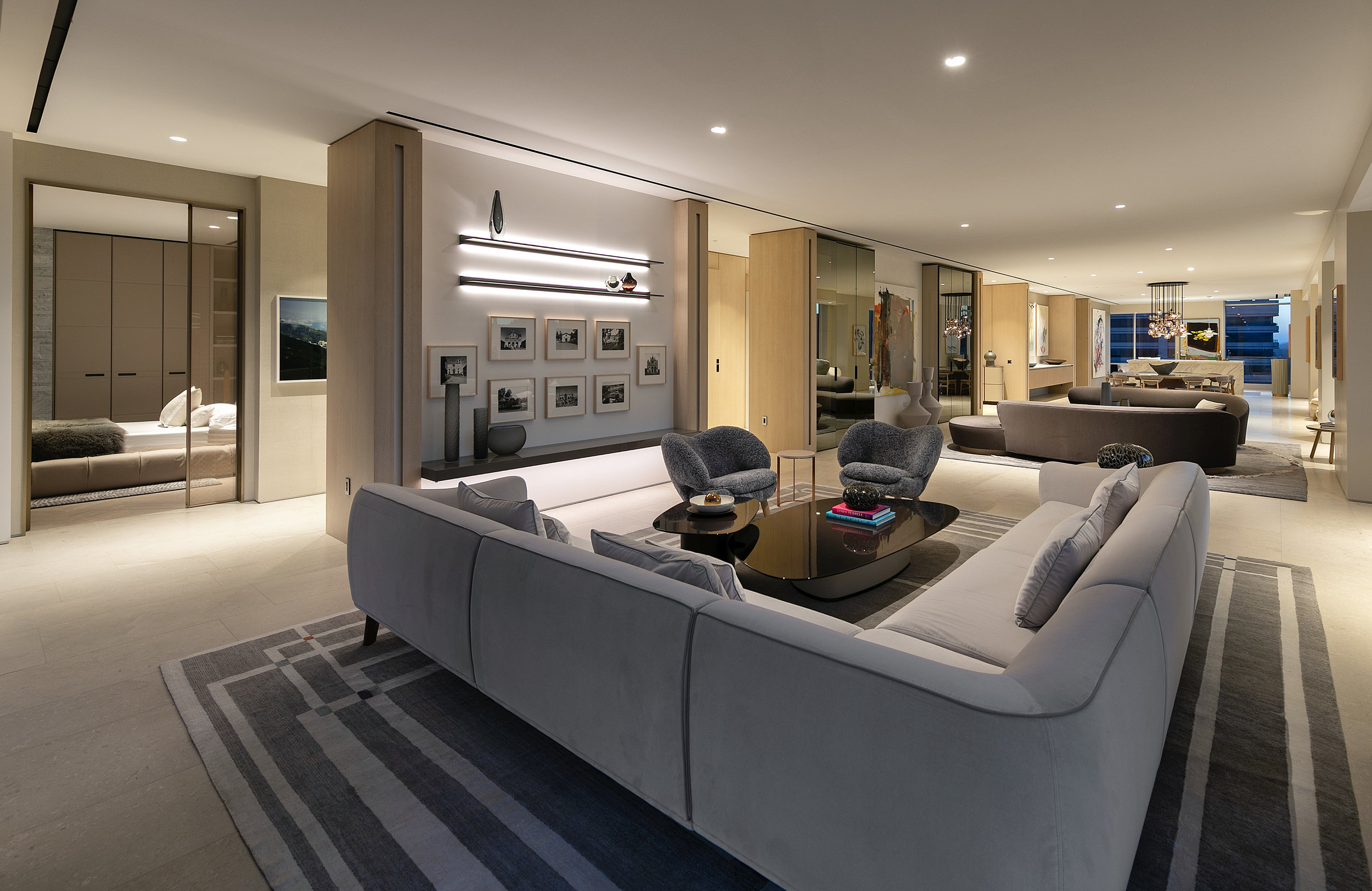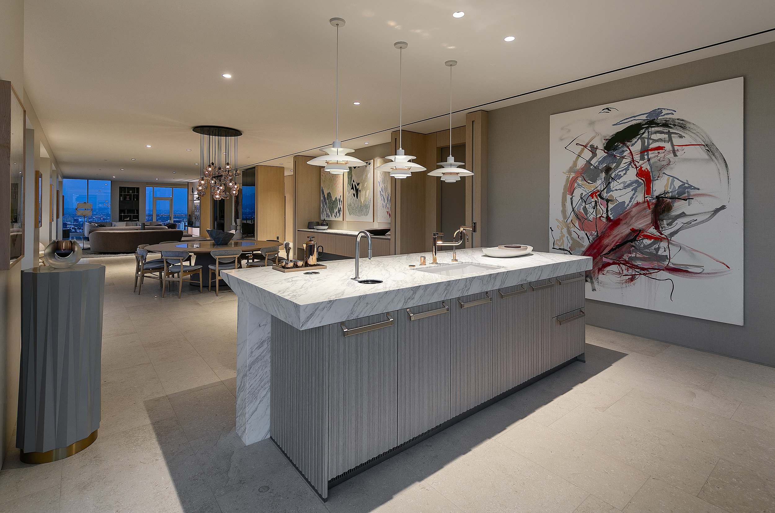Weeknd 买下的这套公寓位于第 18 层,名为 The Mogul。室内设计由 Plum Interiors 创始人 Lisa Garriss 操刀,凭借卓越的工艺和精致的细节奠定了完美的奢享体验。