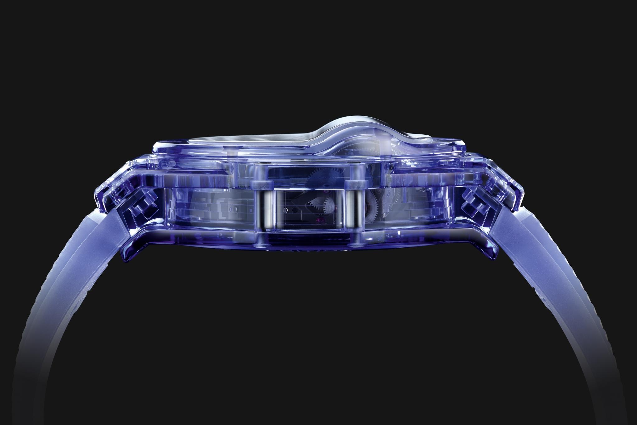 在今年LVMH钟表周上瑞士知名制表品牌宇舶发布了全新的Big Bang MP-11腕表,两款限量版腕表分别由宇舶专利材质“魔法金”与高科技合成的蓝宝石材质制成,再度彰显了品牌在材质运用上的先锋态度。