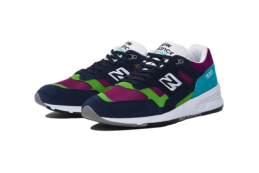 首先是M1530LP ,白色鞋舌辅以海军蓝“New Balance” 标志与浅蓝“MADE IN ENGLAND” 刺绣字样,鞋身采用麂皮绒面革、网眼以及皮革制作,并融合紫色、绿色、海军蓝以及天蓝等色调,再匹配缓震效果极佳的白色REVLite 中底。MTL575LP 看起来更具街头气质,鞋身由网眼、绒面革和橡胶覆盖层组成,鞋舌除了“575” 字样,还伴随编织图案,侧面的“N” 标志通过白色呈现,更显清新。值得一提的是,MTL575LP 的鞋底采用了铰接的两色MEGAGRIP Vibram 大底,进一步完善了整体设计。