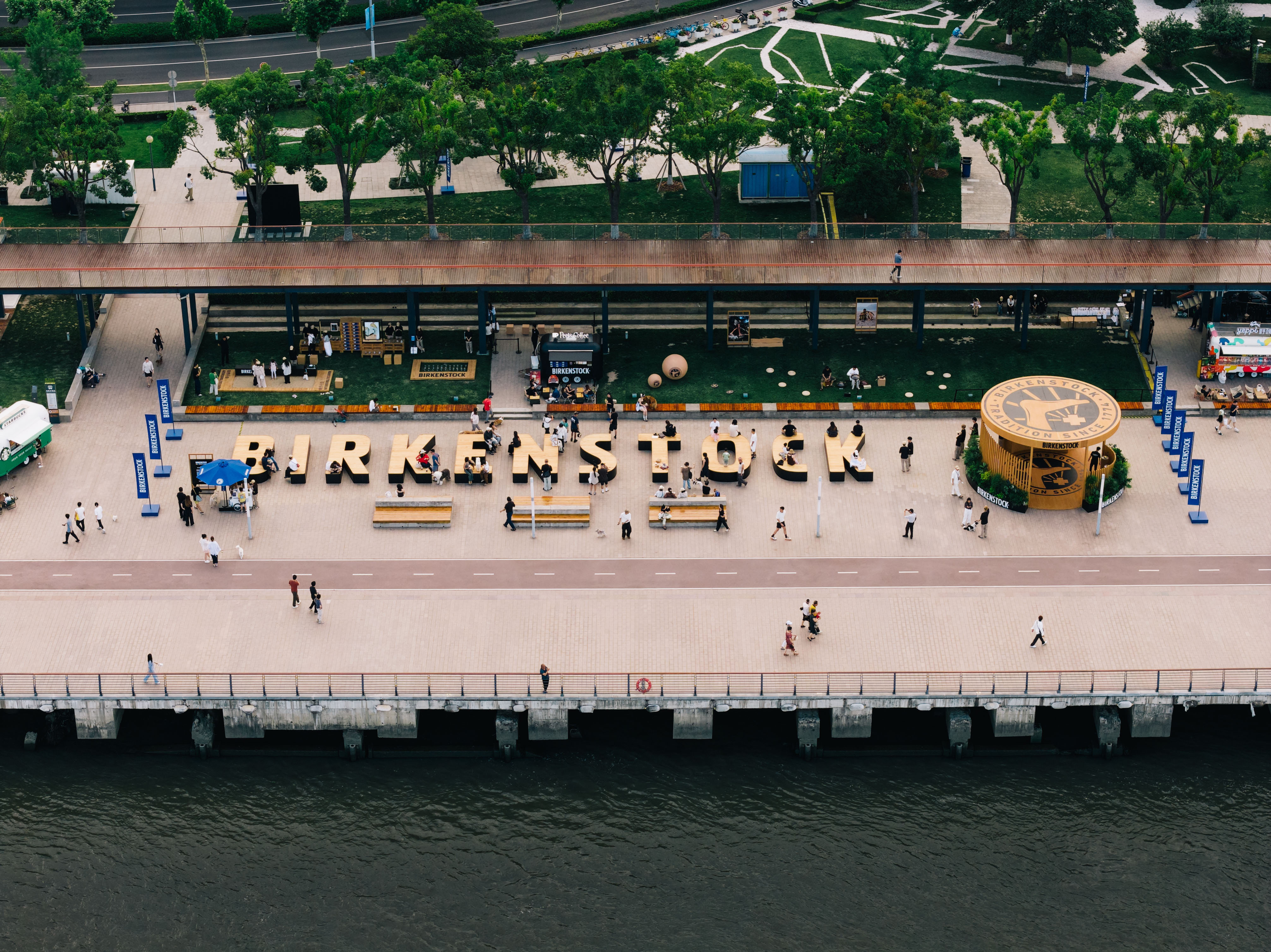 正是秉持着自然健康生活的理念, BIRKENSTOCK勃肯选择于上海徐汇西岸打造周末户外限时体验,旨在以“关注足部健康”为基础,连接健康生活方式与城市文化脉络,促进社群之间的交流互动。在此,市民们能够放慢脚步,悠然自得地漫步于滨江之畔,与勃肯一同以双脚丈量城市。在步履的起落之间,与城市同频呼吸,感受品牌所倡导的自然行走哲学。