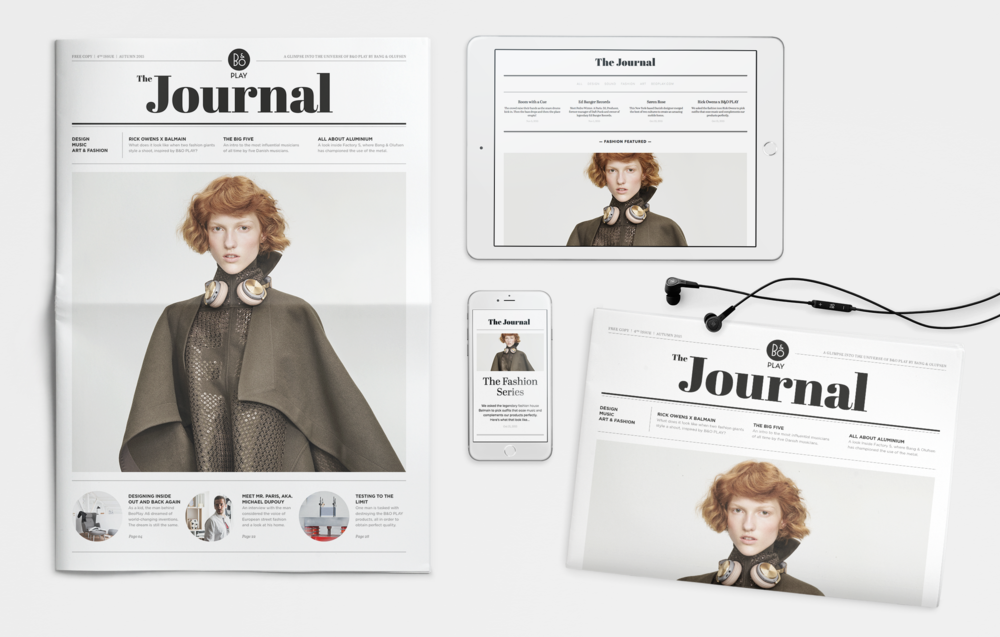 和优衣库推出的《Life Wear》时尚杂志一样,B&O也推出过许多高质量的周边产品,帮助人们更好的享受B&O式的音乐生活。 《The Journal》是B&O推出的线上、纸质刊物,每期都会介绍一些关于音乐、设计师、音乐人、当红的音乐艺术的最新资讯,整体设计和排版依然保持着B&O的高审美标准。
