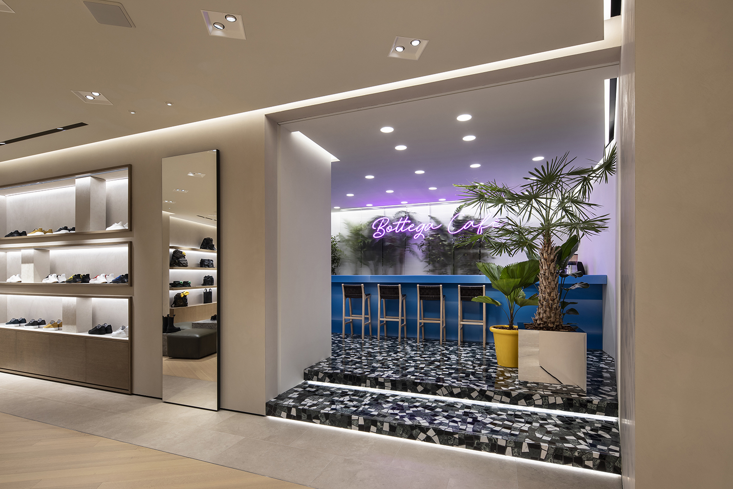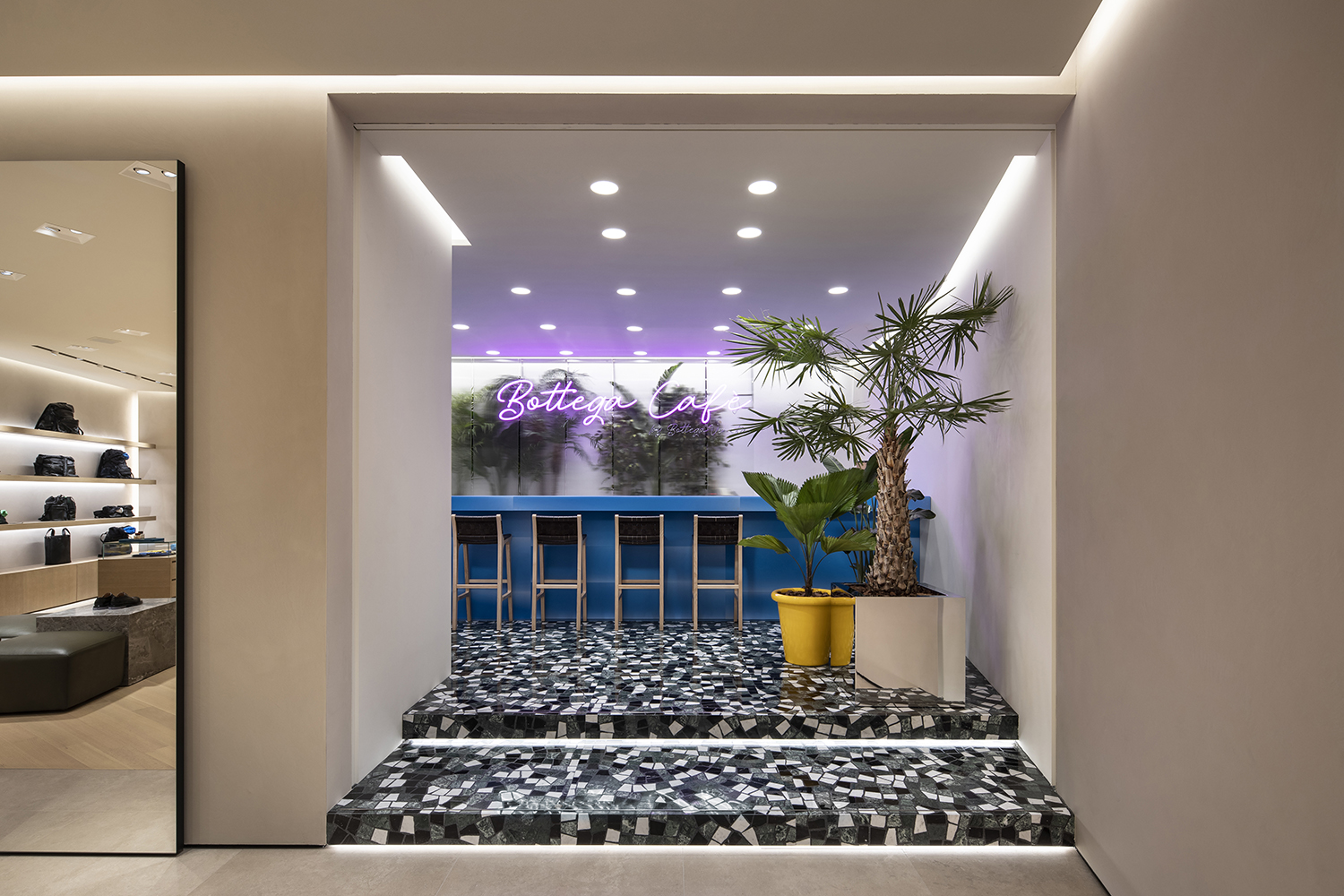 Bottega Cafè 是BOTTEGA VENETA 运营的全球首家咖啡馆业态,目前已于阪急男装的二层开业,具体位于BOTTEGA VENETA 旗舰店铺的后方。Bottega Cafè 的内饰参考意式风格打造,旨在让顾客感受奔放、时髦而热情的意大利氛围。Bottega Cafè 除了提供传统的意大利美食外,顾客还可品尝到正宗的意式提拉米苏与意式薄饼,以及来自品牌起源地Veneto 地区的葡萄酒和开胃菜等小食。而在假日季期间,Bottega Cafè 还会供应限定甜品佳肴『苺とピスタチオのトルタ』,近日有计划前往大阪的朋友不妨前去探访一番。