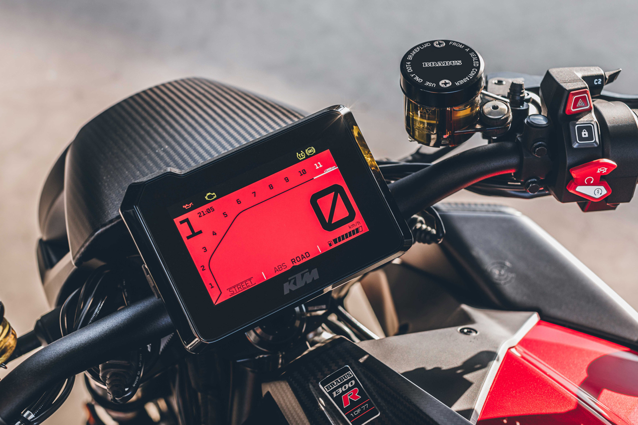 Brabus 的改装向来是不惜工本的,此次的摩托车同样进行的是高性能改装:配备 V-Twin 发动机,可产生 180 马力和 140 牛米扭矩,从 0 加速至 62 MPH 时间为 3.2 秒,同时配备半主动悬架技术(Semi-Active Suspension Technology),可适应不同路面以提供最佳抓地力。此外,座椅和车把位置都经过人体工程学设计,可实现高水准的控制体验。而在外观方面,摩托车配备了两种标志性的配色方案(岩浆红与经典黑)和锻造的 Brabus Monoblock Z 车轮,同时搭载高端碳素车身元件和定制的加热座椅,至于车头,则装上大面积的 LED 圆灯配上浮夸的肌肉线条,展露硬核德式街霸风格。据悉,Brabus 1300 R 仅提供 144 辆,其中每款配色各 72 辆。