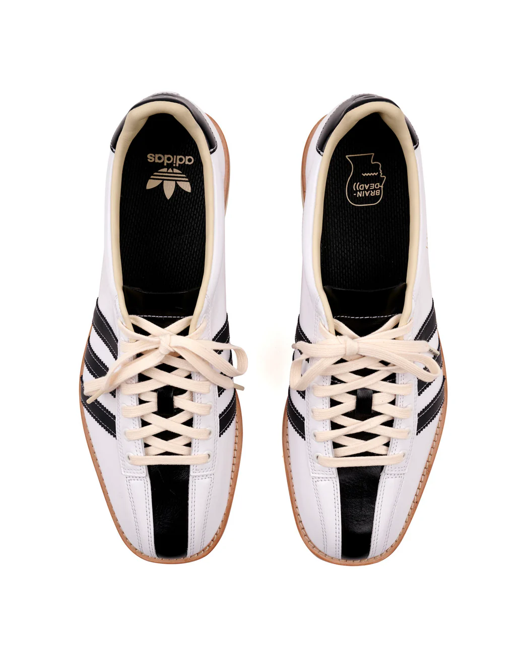 从时髦的无鞋带 Oakley 球鞋,到别致的 Clarks Originals 奶牛主题 Desert Nomad ,Brain Dead 在球鞋领域总有百般奇思妙想,现在,脑死更是进军保龄球鞋领域,联合 adidas Originals 带来一双全新皮革保龄球鞋 “LEFTY” 。