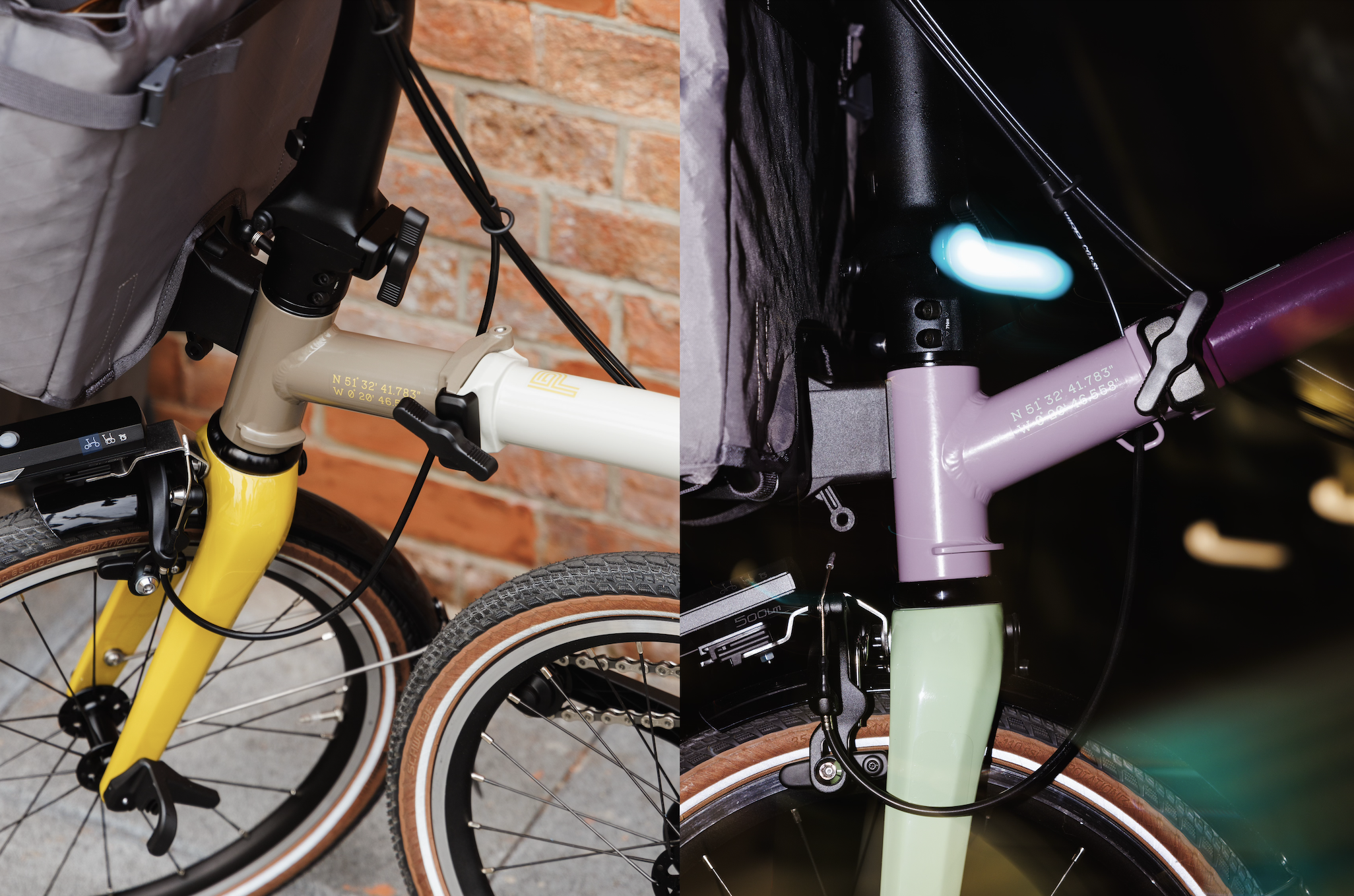 都市探行系列以「经纬」为设计原点,将时间与空间的流动转化为可感知的视觉语言,将晨光的清透与霓虹的灯影凝练于车身,勾勒城市昼夜交替的无界之美。中国大陆限定“拂晓白”取色于破晓时分的澄澈天幕,以雾白为底,点缀阴影棕与光晕黄,如日光洒落于建筑轮廓之上,层次分明,秩序井然。亚太限定“霓夜紫”则以深邃夜色为基底,黄昏紫与薄荷绿跃动其间,仿佛暮色中流动的车灯与街角橱窗的斑斓倒影。车架前端皆饰有BROMPTON伦敦格林福德工厂GPS坐标定位——N 51° 32' 41.783" W 0° 20' 46.558",以此铭刻品牌五十余年英伦匠心工艺的源起,也象征每一辆BROMPTON与骑行者旅程的序章。