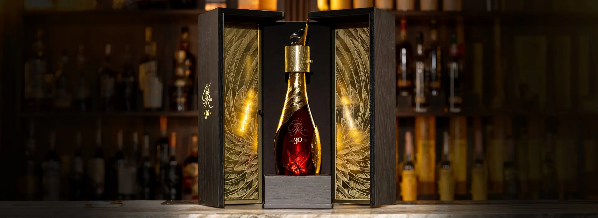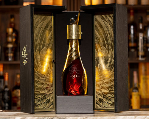 Eagle Rare 诞生于 20 世纪 70 年代,是 Buffalo Trace 旗下专注于高端市场的品牌。这款 Eagle Rare 30 年陈酿波本威士忌(酒精度为101度,即 50.5% ABV)香气层次丰富,带有烤樱桃、红糖、焦糖和蜂蜜的香气,并伴有淡淡的坚果香、温暖的烟草香、橡木香以及一丝烟熏味。其口感丰富饱满,甜美的陈年核果和焦糖风味萦绕口腔,随后是悠长丝滑的余韵,甜味将逐渐过渡到淡淡的烟熏味,精致的橡木香气贯穿始终,柔和而平衡。该 30 年威士忌装在 750 毫升手工吹制的水晶酒瓶中,瓶身饰以手工锤制的镀金鹰翼,瓶内还镶嵌着一只玻璃雕花雄鹰。这款定制展示盒在打开后,会露出展开的双翼,将波本威士忌环绕其中,这可谓是美国威士忌最具戏剧性的展示方式了。