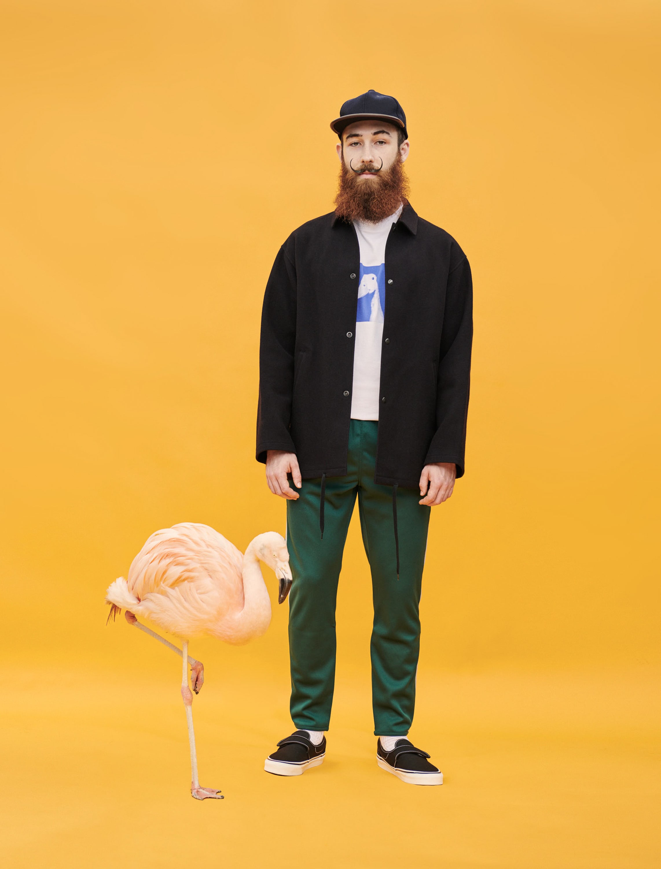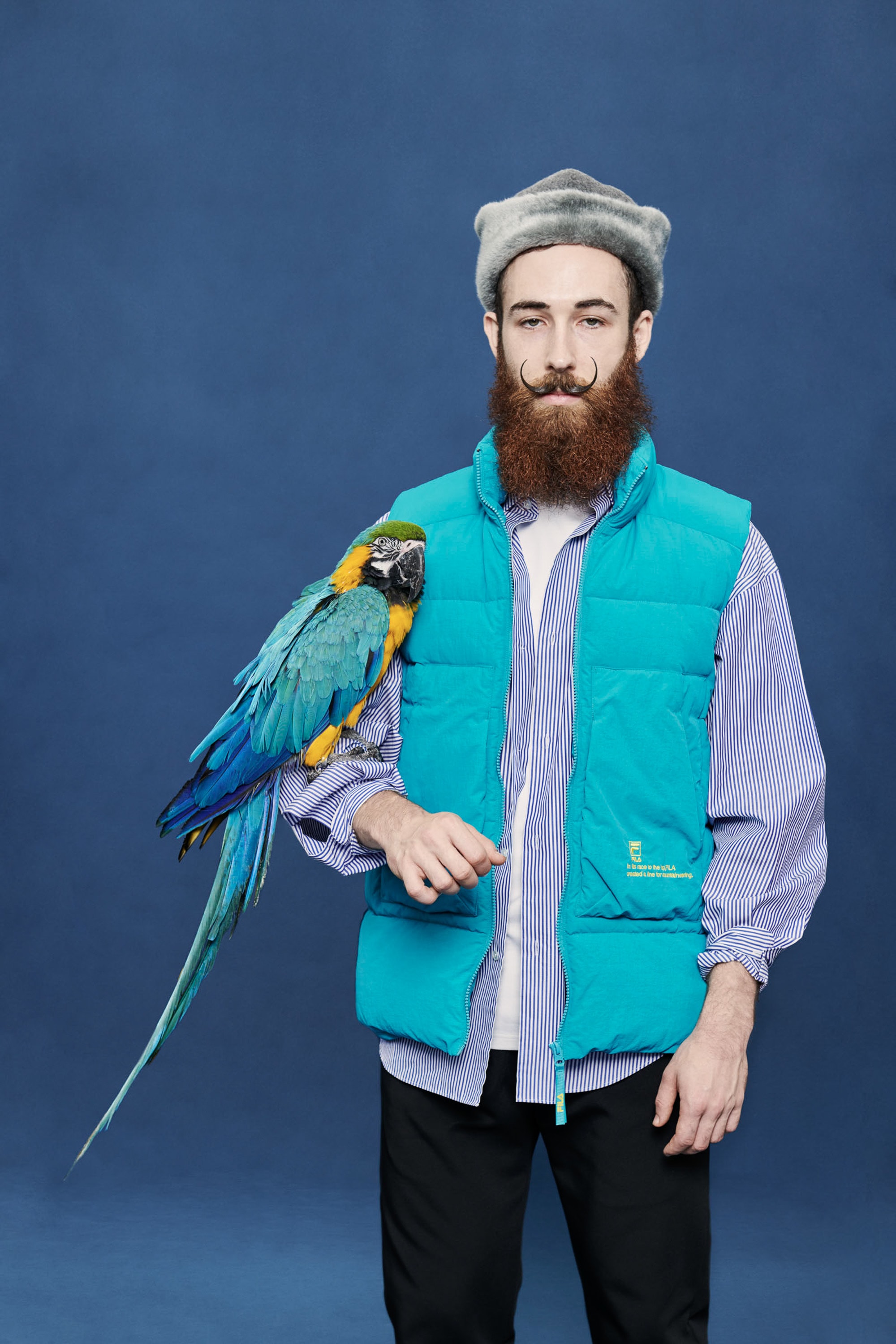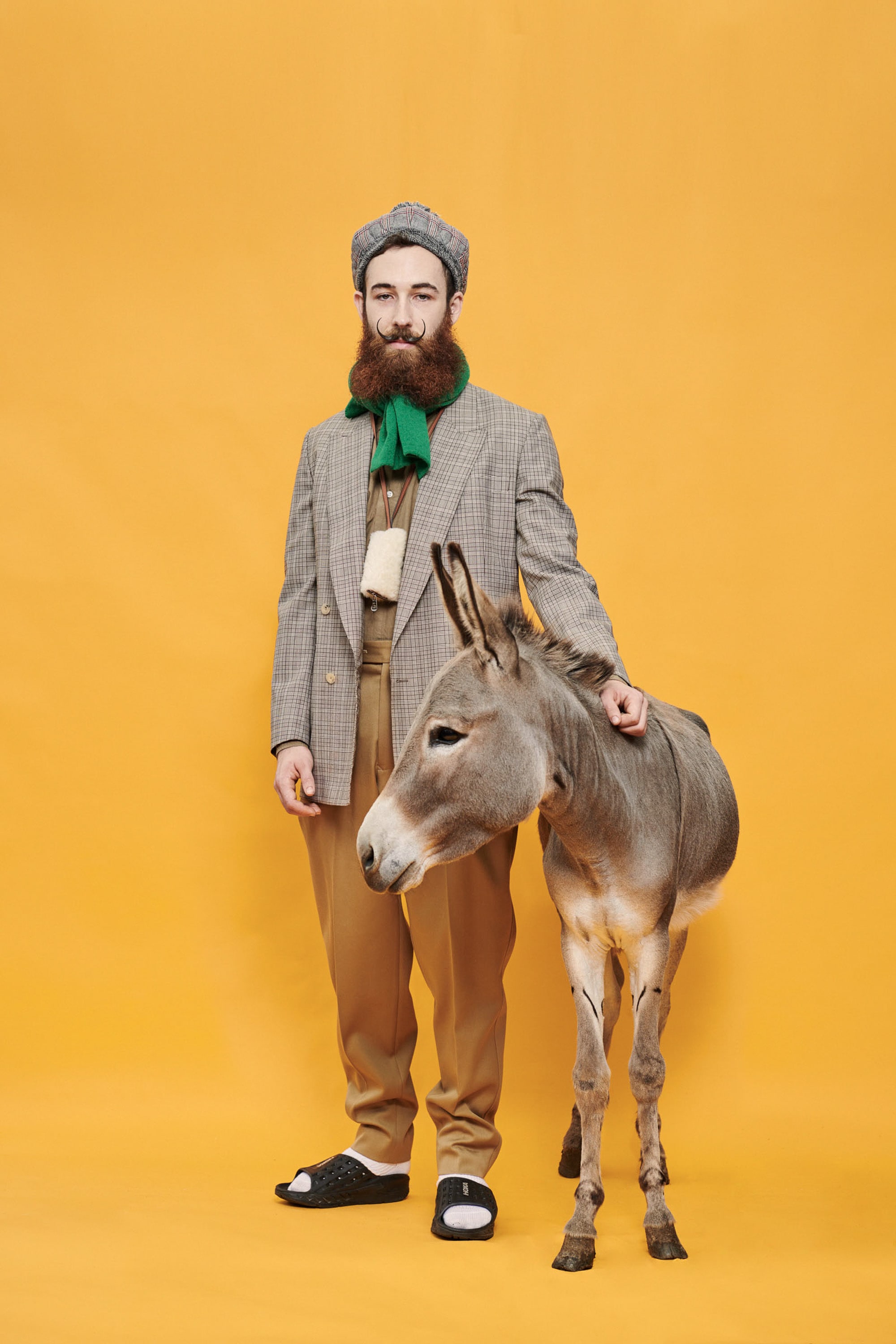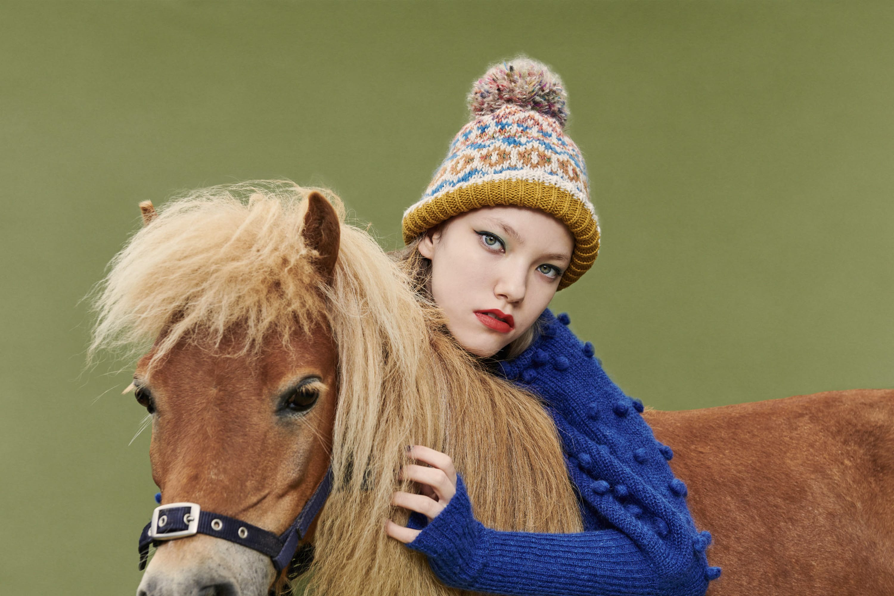 这一季的“NEW SENSATION” 系列,如其名所示,带给人的感官体验尤其“新颖”与“引起轰动”。除了永恒的主角“帽子”,型录的其他部分CA4LA 未曾怠慢,不管是多彩又吸睛的背景,还是男女老少模特们每一身精巧的搭配造型,甚至是模特们的“搭档”,都让人感到惊喜之余不由惊呼:信息量也太大了吧?没错,模特们领着火烈鸟、猫、驴、鹦鹉、狼、羊、孔雀、马、猪、狗、袋鼠甚至是(小)狮子上场,不仅展现了品牌的多元价值观,也将创新俏皮的精神内核再度放大。单品方面,本季可着重关注bomber cap 、 knit cap 、 head band 、 watch cap 、 casquette 、 beret 等款式。