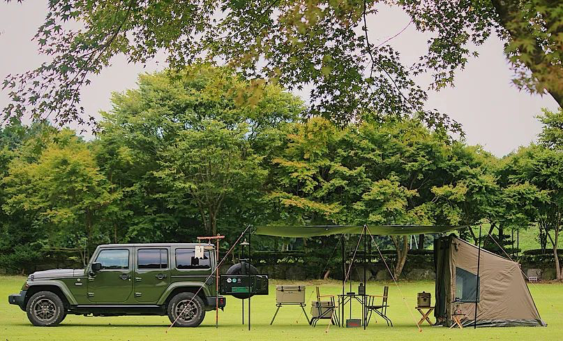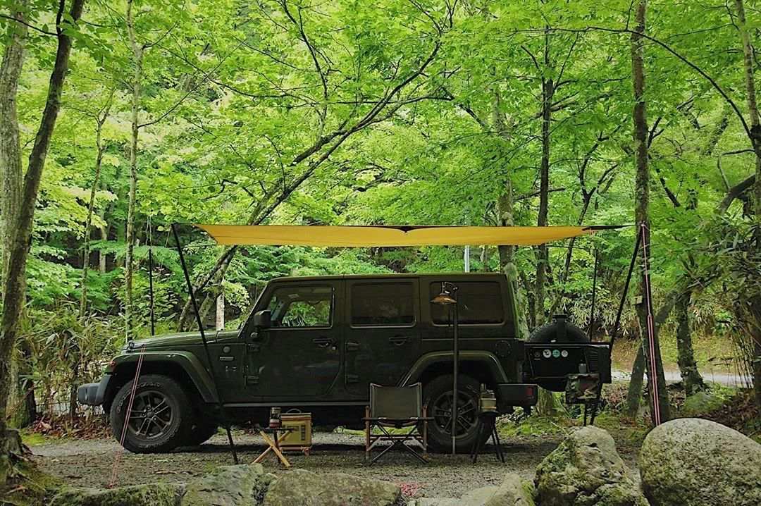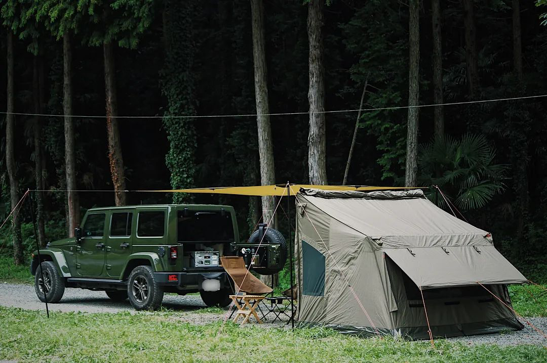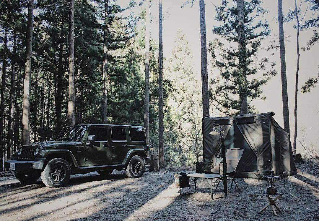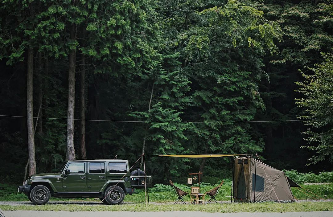 以吉普车为主角打造的军事风格场景,简单的来说就是用绿色作为主色,然后在不冲突的情况下去补充其他颜色饱和度较低的小件装备,关键是要选择对与车相呼应的帐篷和天幕。