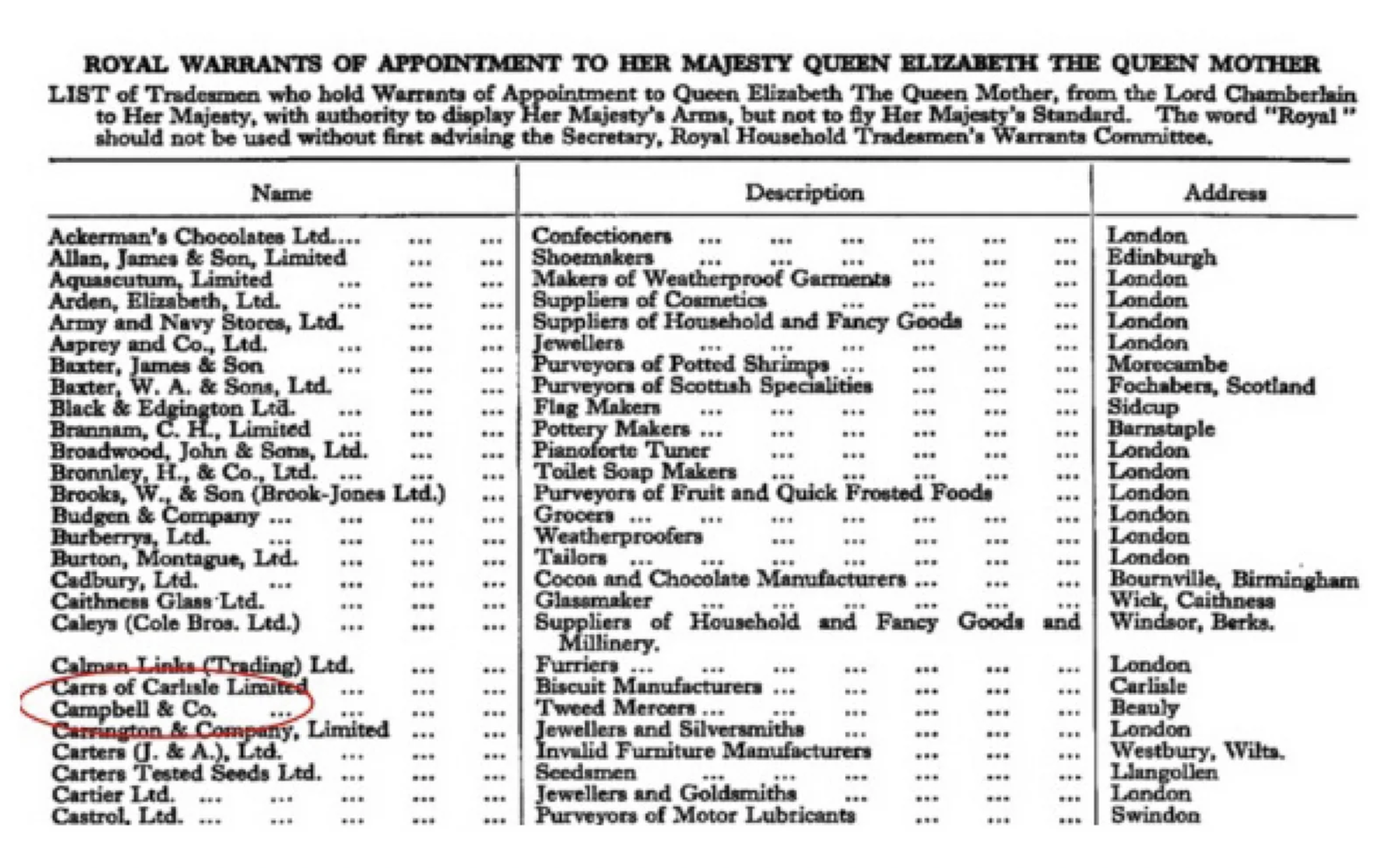 1975年,王太后陛下为表彰品牌对传统工艺的坚守,授予Campbell & Co.皇家御用委任状。