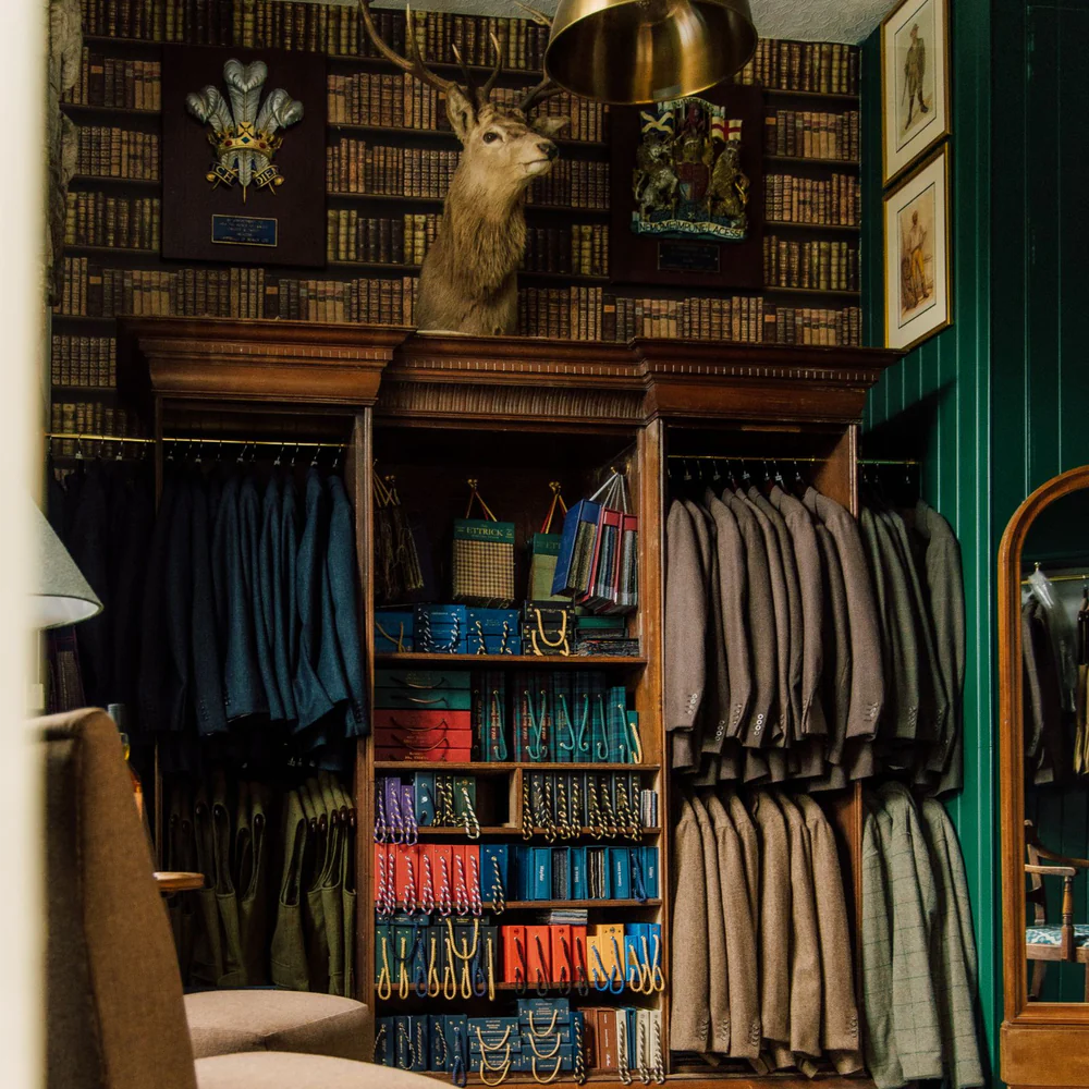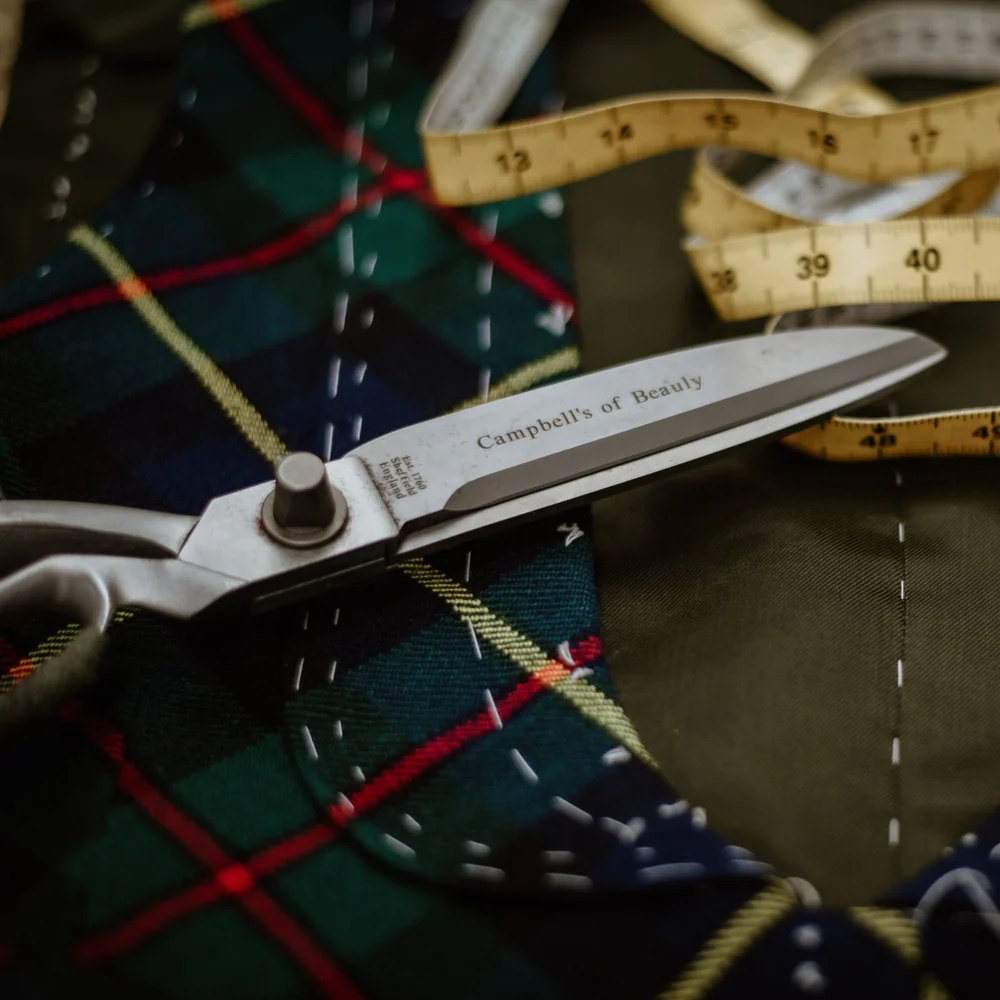 Campbell's of Beauly 的日常定制主要分为三个环节。首先是咨询与量体,顾客需提前预约,到店后品牌会详细了解其风格喜好、个人志趣与生活方式,同时明确定制单品的用途,确保后续制作精准契合需求。接下来是面料与款式选择,顾客可从店内众多高品质面料中挑选心仪款型,再敲定内衬、纽扣、领型等细节,让单品真正实现专属定制。最后是试穿与调整,成衣制作完成后,品牌会与顾客再次预约,进行试穿与细节微调,直至呈现完美的穿着效果。