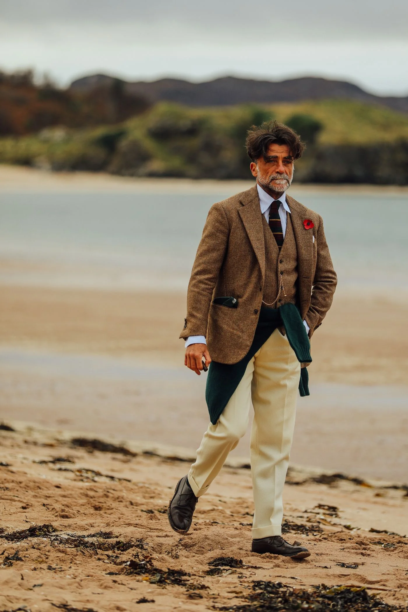 除了定制服务之外,Campbell's of Beauly每年还会推出专属的成衣系列。男装主打经久不衰的经典设计,且格外注重品质。全新一季系列特意选址苏格兰西海岸风景如画的普洛克顿(Plockton)取景拍摄,完美平衡了粗犷与精致的质感,尽显男性低调成熟的风格魅力。面料选择以品牌经典粗花呢为核心,主打经久耐穿且能适应各类户外环境,专为苏格兰高地变幻莫测的自然环境量身设计。