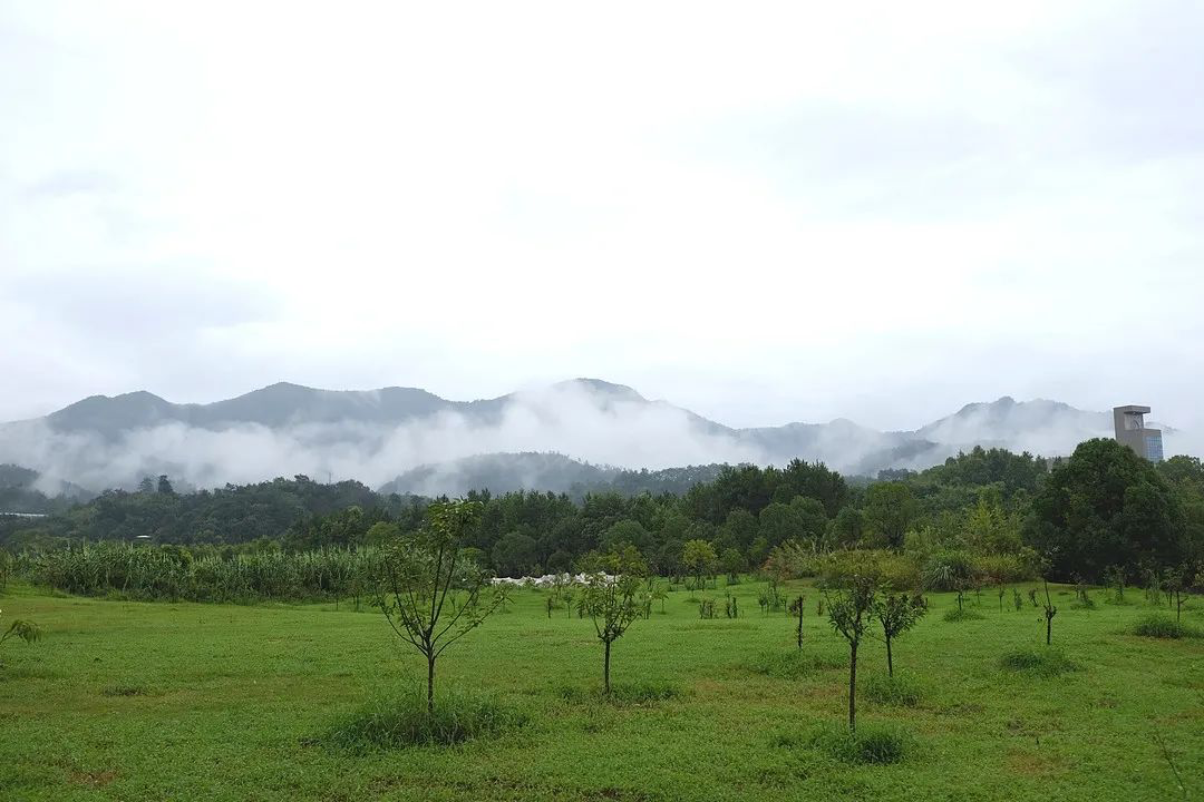 途经山丘、穿越隧道、路过湖泊……我们终于抵达了此行的目的地。撑伞走向露营地,夹杂着些许的雨水,湿润的风扑面而来,迎接来自北方的客人们。满眼望过去的绿,颜色各异、错落有致。