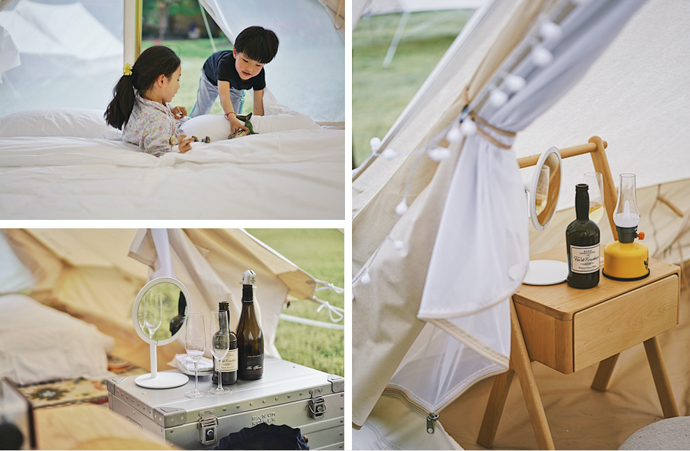 营地内的自有帐篷可以进行租借,配套五星级床品,并且篷内设施一应俱全。正在筹备中的常规露营地全面开放后,自带装备的朋友也可以挑选自己心仪的场地进行搭建。