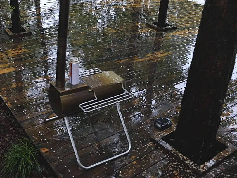 营地小木屋负责接待和装备储存,并设有两个卫生间。营地里的其中一个木平台可以放映电影,另一个休闲娱乐木平台区为烹制美食的功能区。
