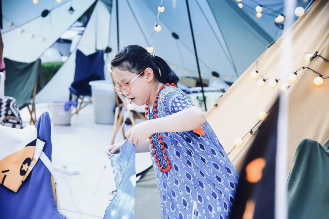 来自腾冲原乡的扎染师傅带来了精美的手工扎染作品,妙趣横生的传统扎染技艺体验也吸引了很多帐友,尤其是小朋友前来体验。