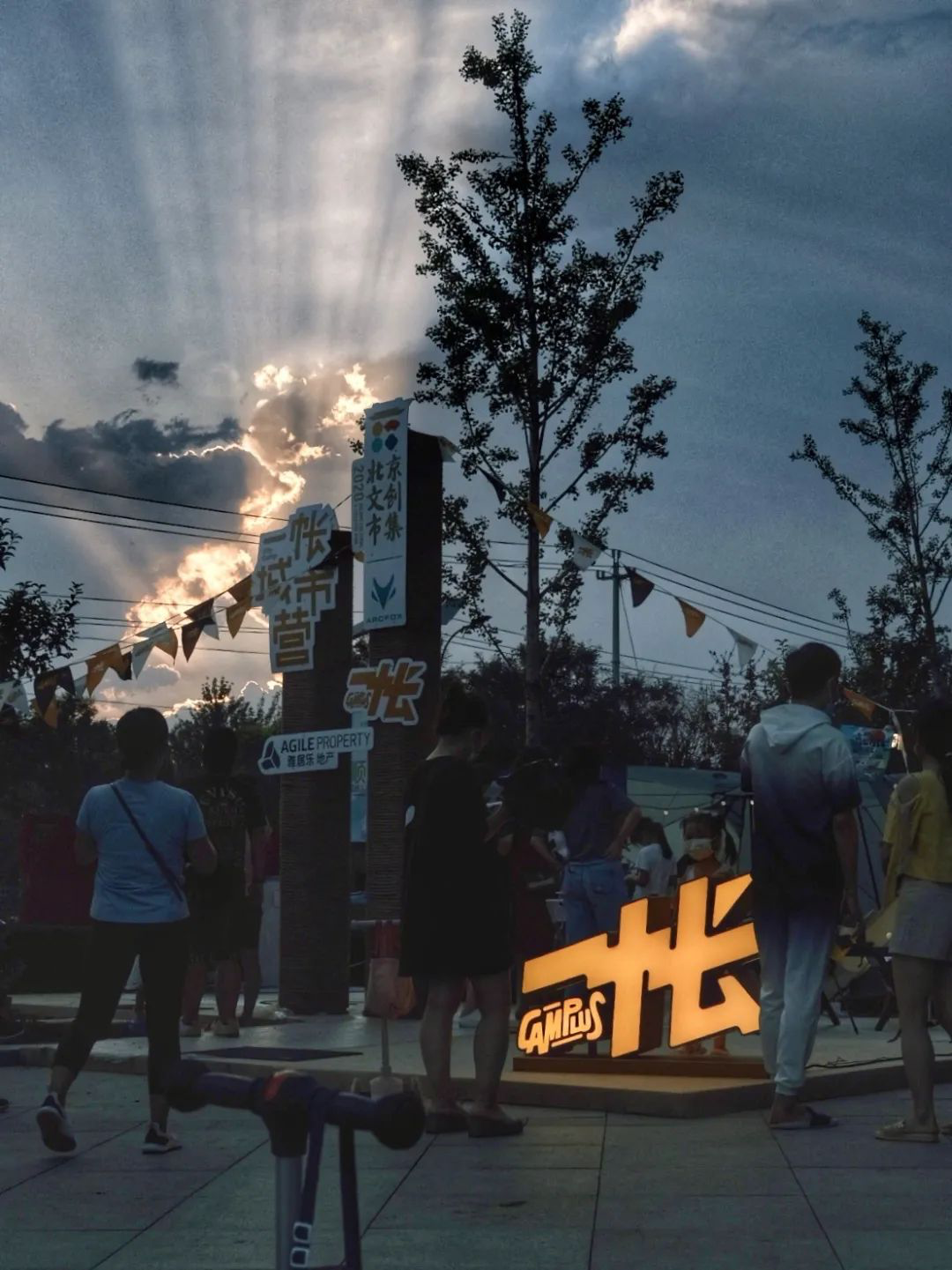 当北京文创市集祥云小镇临近尾声时,雨后格外清朗的落日余晖被云层渲染开。很多人都见过绚烂的城市霓虹,但自然的笔触仍能吸引每个路过的人驻足流连。这也是姨丈想要和大家一同步入户外的原因之一。