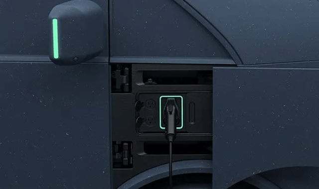 充电口位于车身右前方,在边上还有两个三相插座,具有V2L外放电功能,可以为其他设备供电。