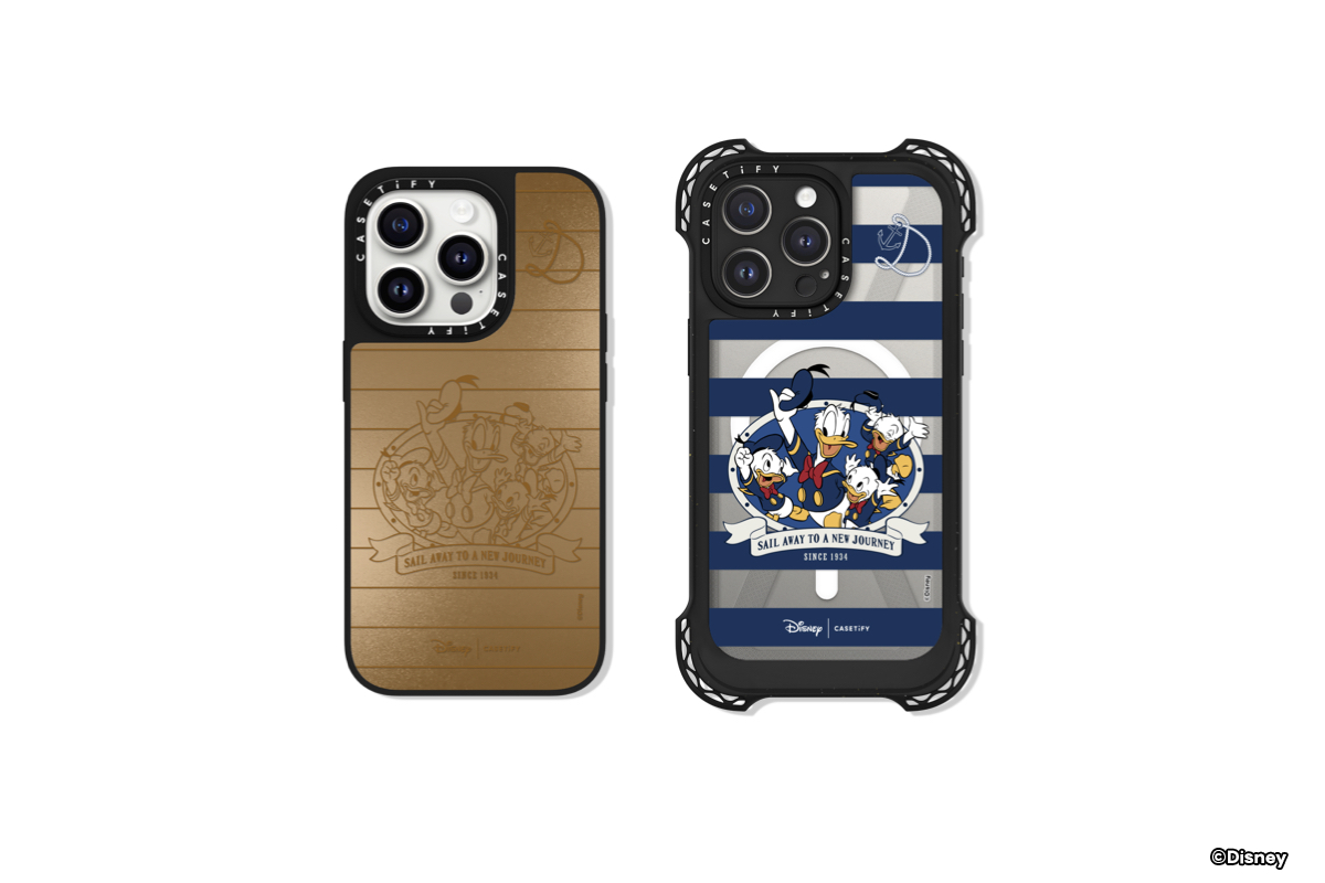 迪士尼唐老鸭系列适配iPhone11-15相关产品,同时针对不同用户的防摔功能需求,提供CASETiFY标志性的强悍防摔手机壳 (Impact Case)、特强防摔手机壳 (Ultra Impact Case)、透明手机壳 (Clear Case) 和镜面手机壳 (Mirror Case)等丰富产品。本次合作系列还呈现了许多唐老鸭作品中的代表画面,Classic Opening Case再现了他在《糊涂交响曲》中的首次亮相,Living Legend Case则生动展现了90年来唐老鸭角色形象的演变, New Journey Case 则将唐老鸭的形象镶嵌在一面仿若金牌的特质金黄镜面之上,似是对其90年来陪伴全球粉丝成长的赞赏。