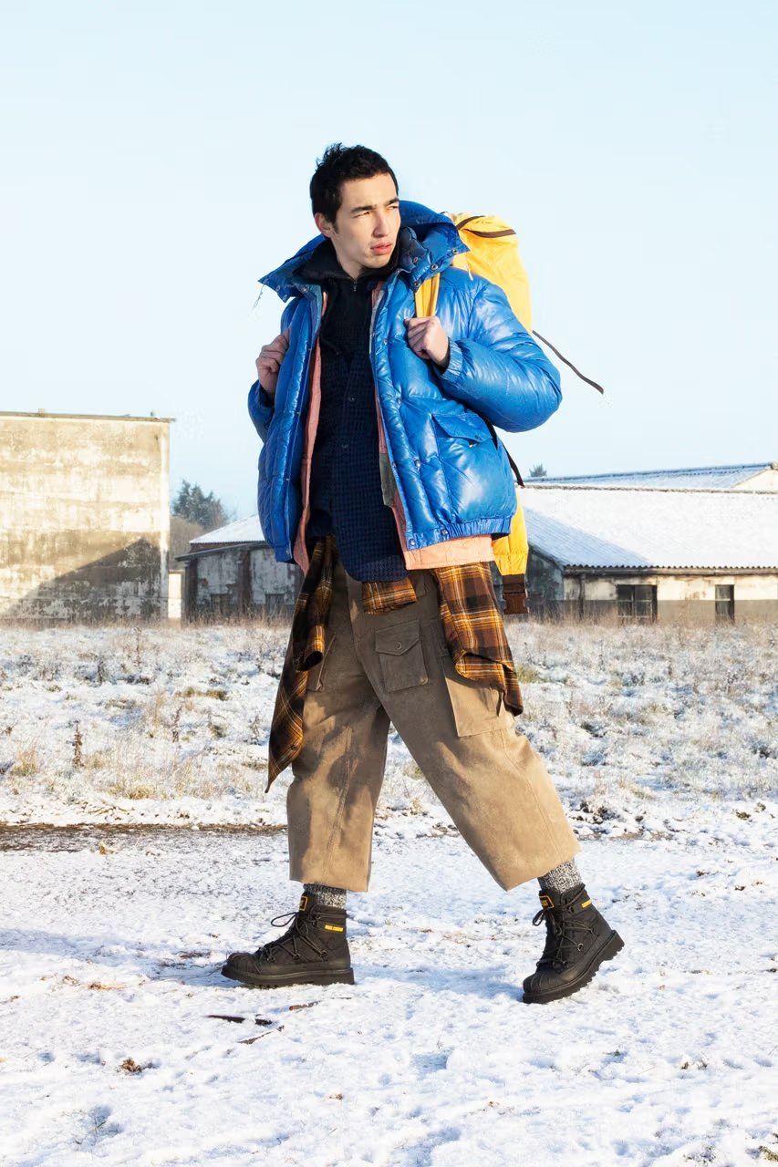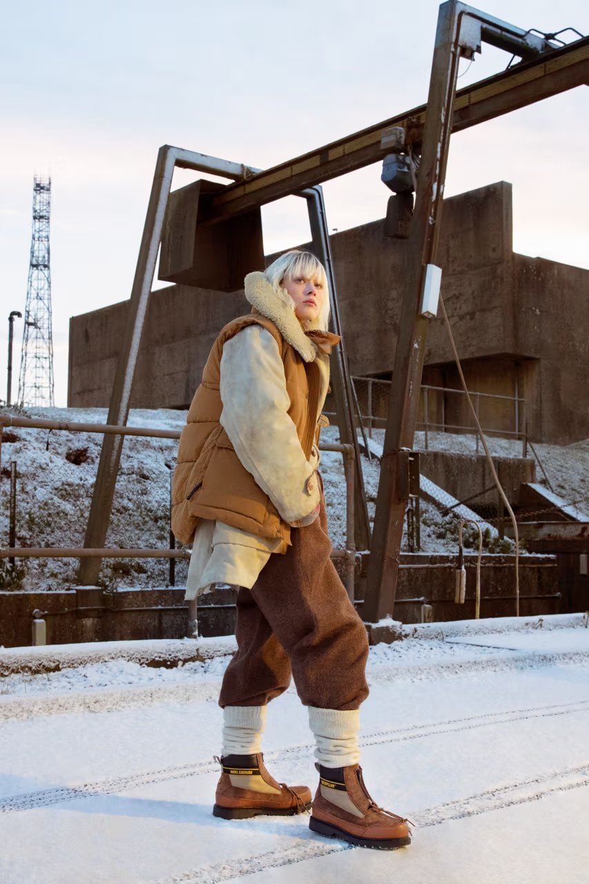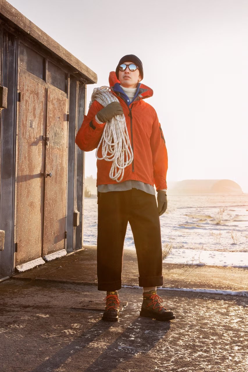 与前回合作类似,Cat x Nigel Cabourn 对历史事件有着共同热情,本回灵感来自 Caterpillar Inc. 于 1956 年进行的备受赞誉的南极探险,即 “Operation Deepfreeze” 行动。Cat x Nigel 将功能性材料与 Nigel Cabourn 的军事传统相结合,对原始 Omaha 和 Utah 廓形进行变奏处理。针对受军装靴启发的 Omaha ,Cat 为其赋予 3D 打印鞋头和由挡泥板组成的厚实外底,以让其维持经典重型感。而鞋面则采用绗缝尼龙,以增加绝缘性同时彰显崭新工业外观。最后,Nigel Cabourn 还设计了网状系带系统,旨在模仿标志性的 Expedition 派克大衣。
