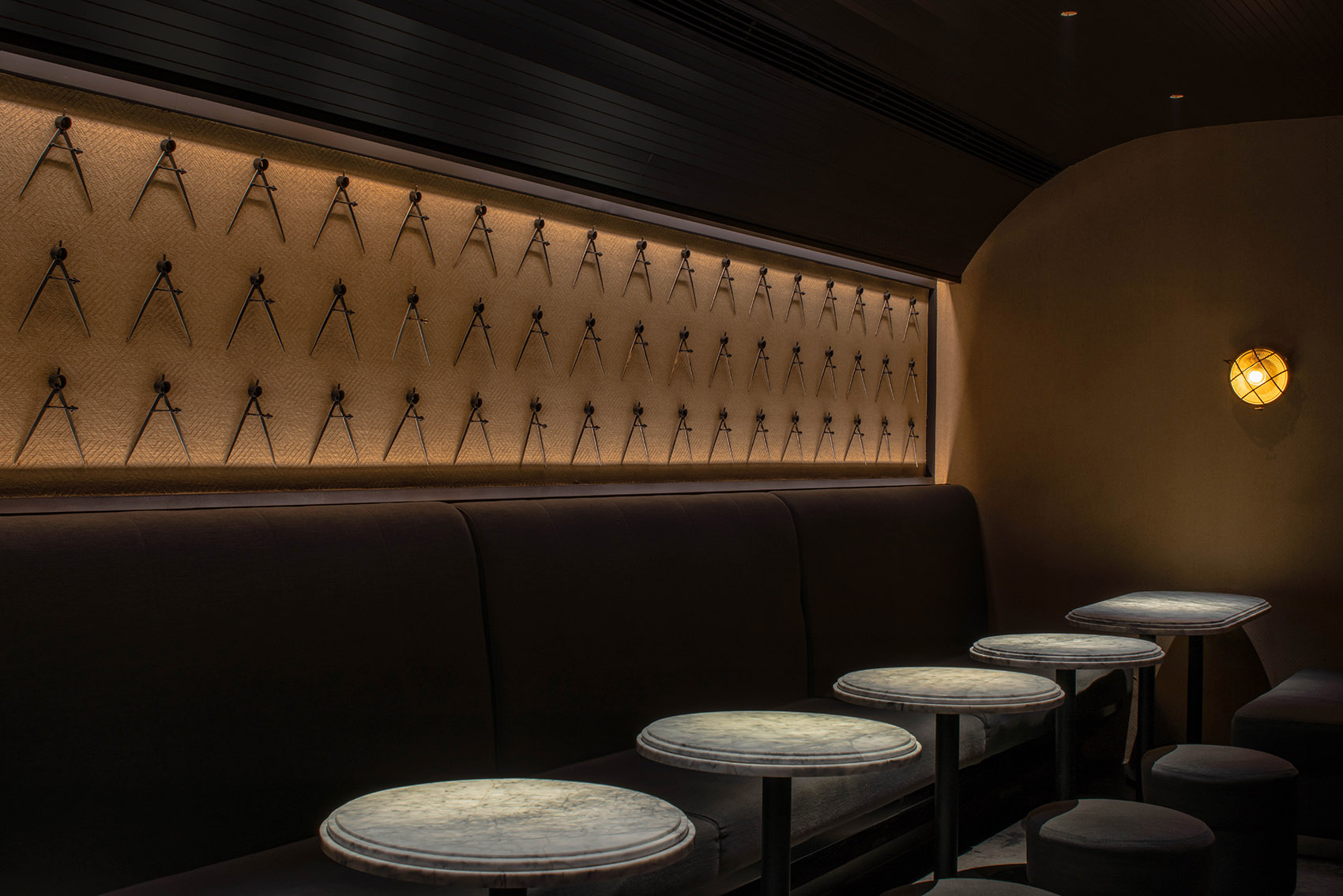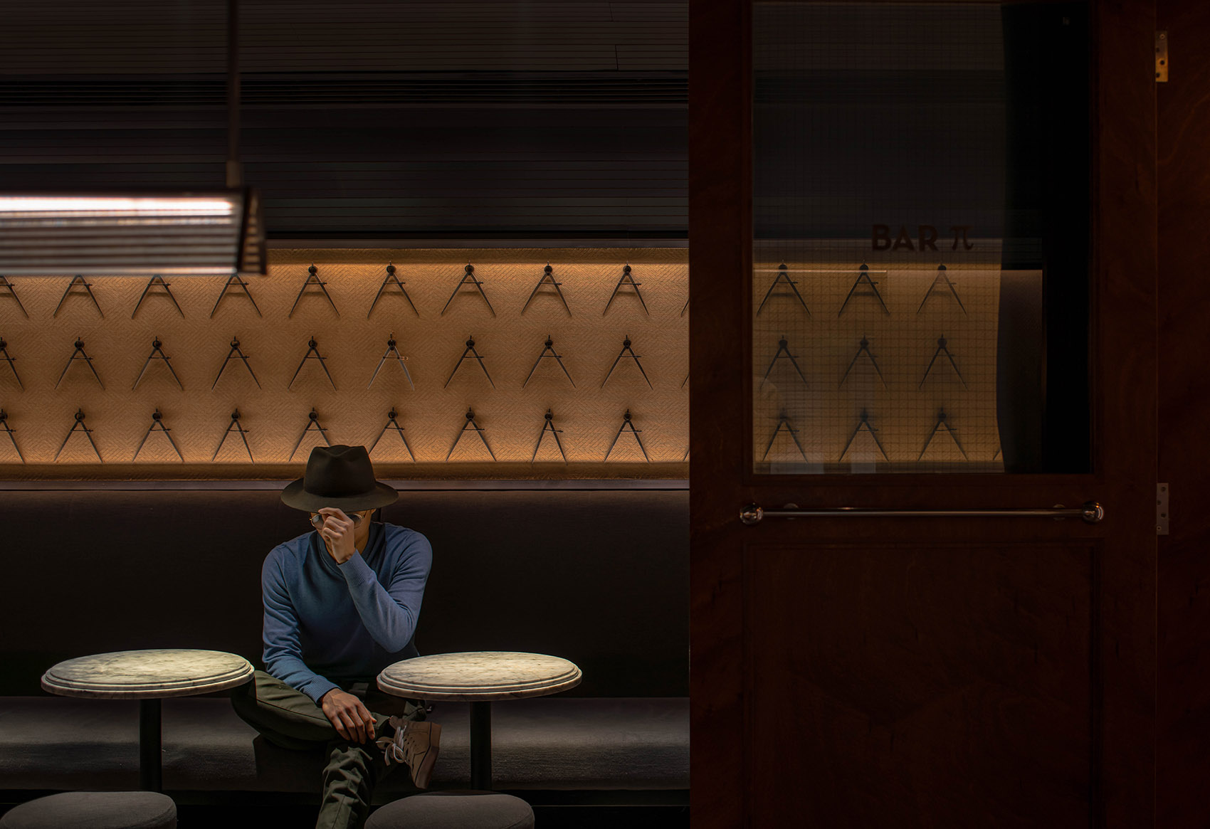 “Bar π”作为设计师从命名、设计到共同经营的设计型酒吧,完全从设计角度,将对于「空间体验」的理解作出极致的表达。圆规与π之间的联系不言而喻,用圆规作为「Bar π」品牌的视觉符号,阵列式的圆规墙在获得辨识度的同时,超越了语言和文字的局限。酒单的主视觉元素和调酒的命名都围绕着数学的主题,如圆周率,三角函数,欧姆定律等等;甚至是经营时间播放歌单的选择,都是“Bar π”想要达到的更为整体的空间消费体验。