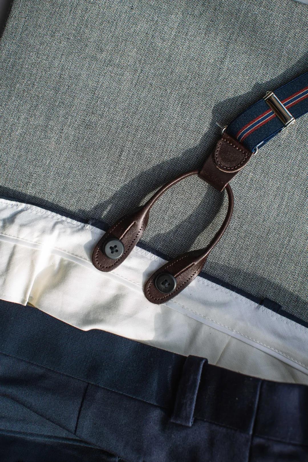 在扣子的设计上我们花了很多心思。如果您喜欢系背带的话,我们也为您设计了背带扣。