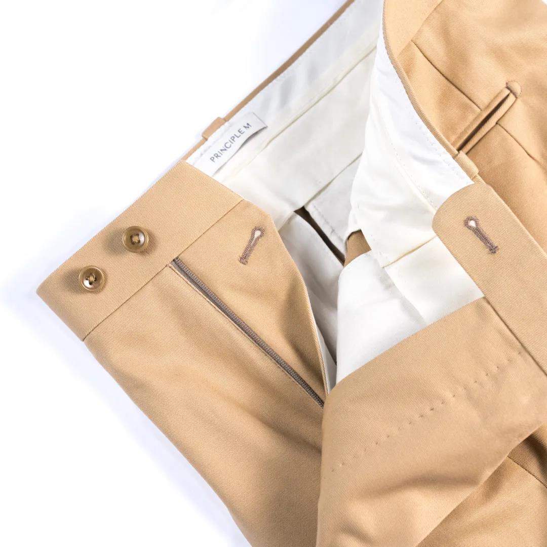 这款休闲西裤(Chinos,亦被称为卡其裤)采用的是100%纯棉布料,可以机洗,实穿性强,不宜变形,适合日常通勤和下班休闲等各个场合,是男士衣柜里的必备基础单品。