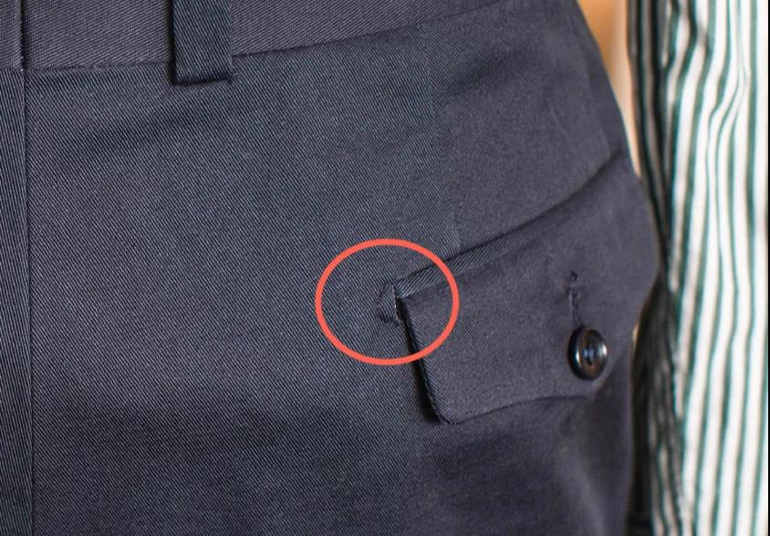在口袋上,我们不仅增加了一个扣子,缝线处也有更牢固的设计,取东西时不用担心被扯坏,也可以放心的把您的钱包和手机放进去。为了传承经典,我们也增加了装怀表的小口袋这种有趣的设计。您也可以用来放硬币,或其它的小物件。