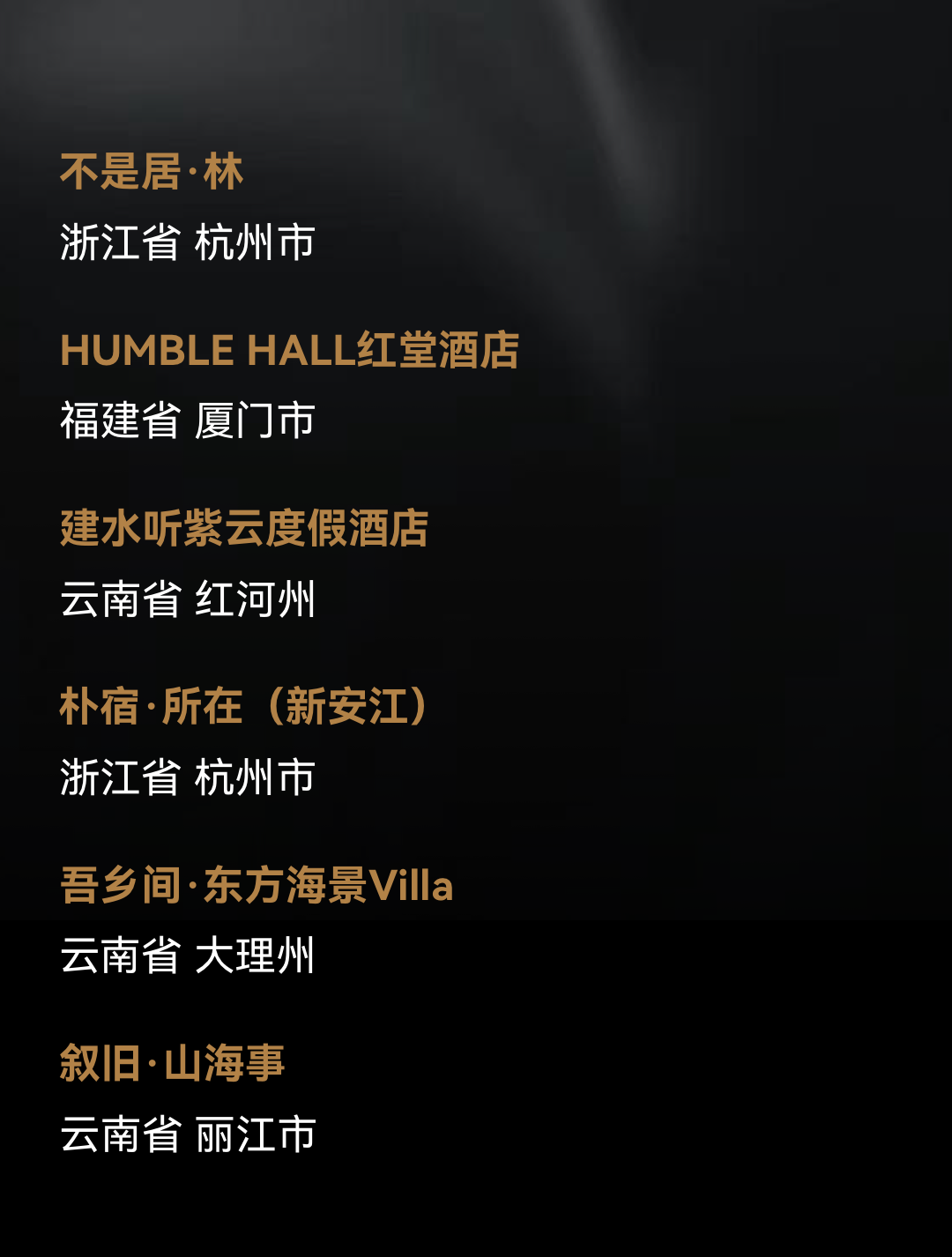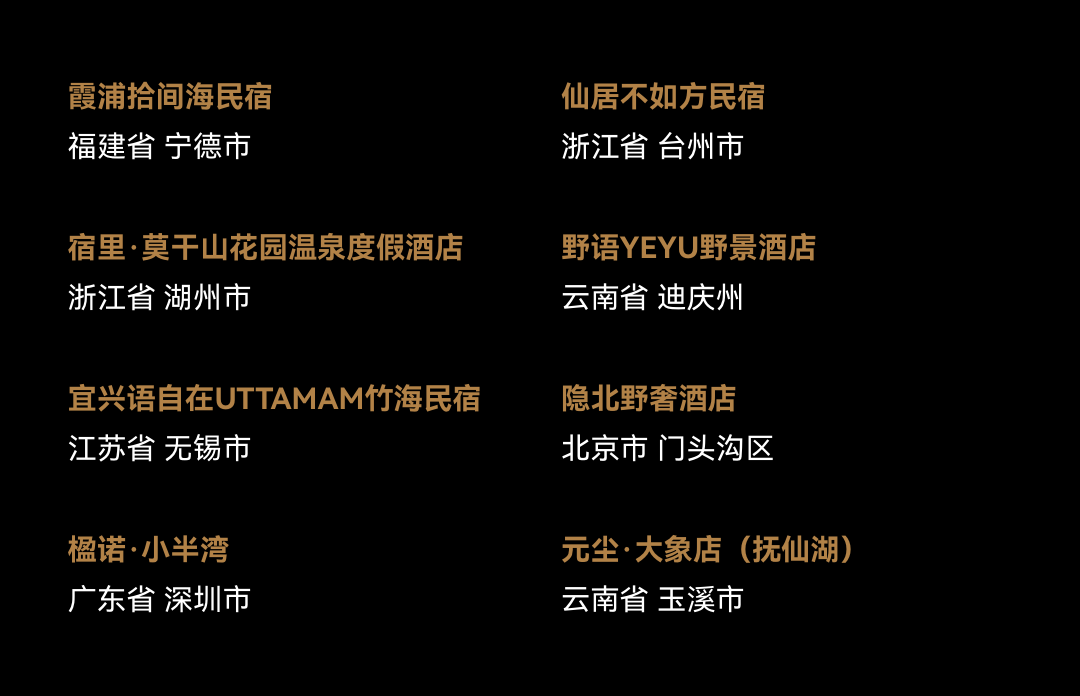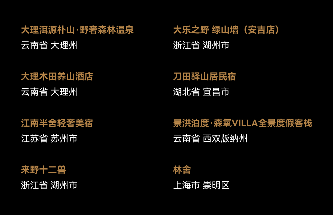 他们当中有度假酒店、精品民宿,也有精致露营地。他们在中国别样的自然景观与人文环境之中,遗世而美好。