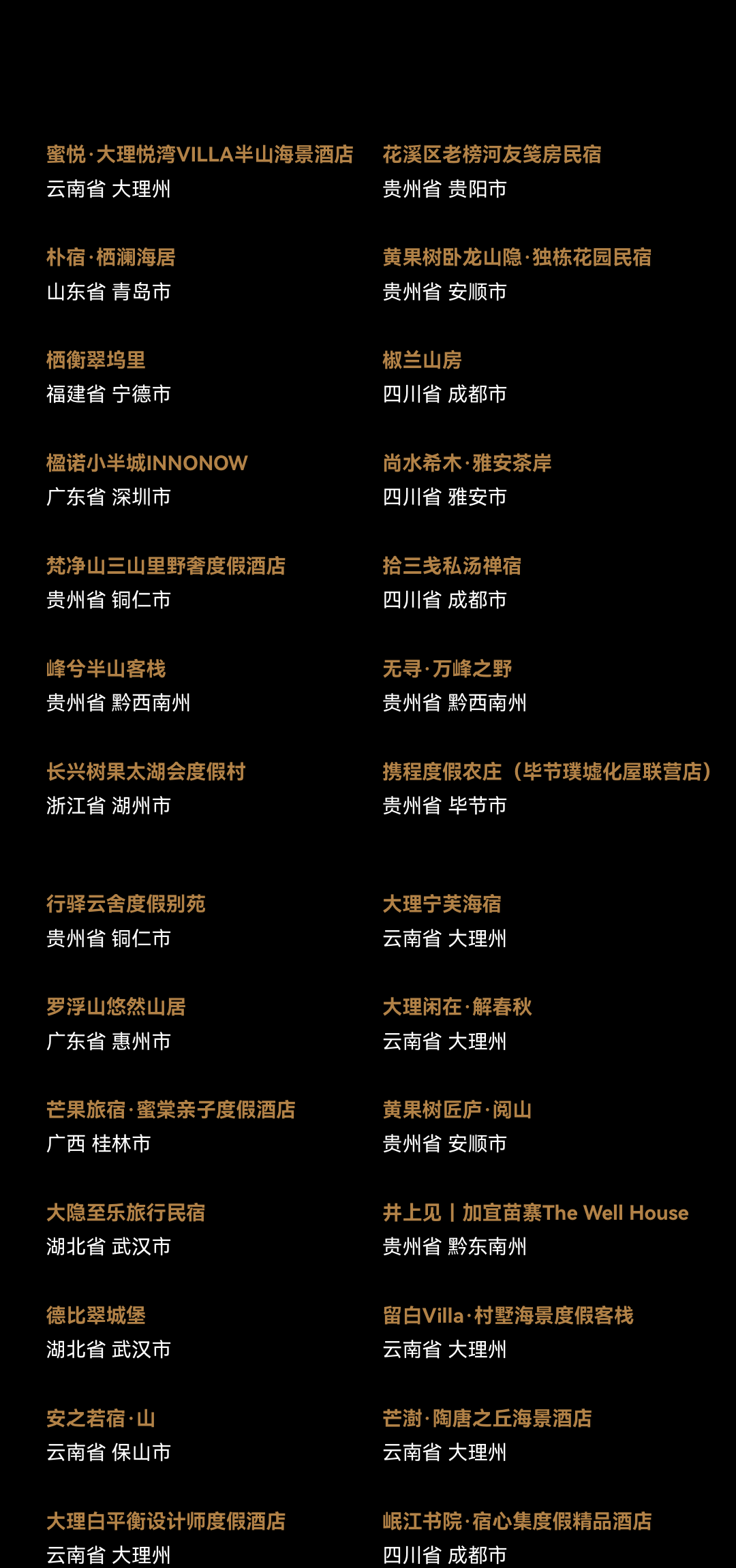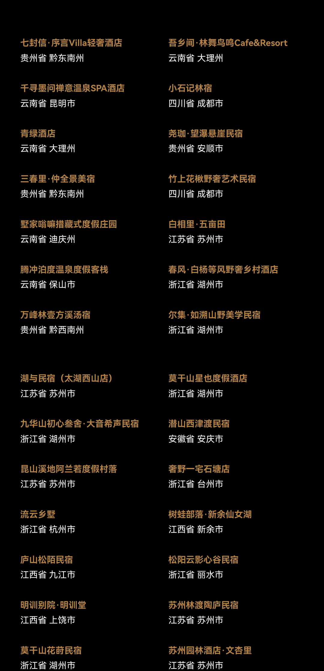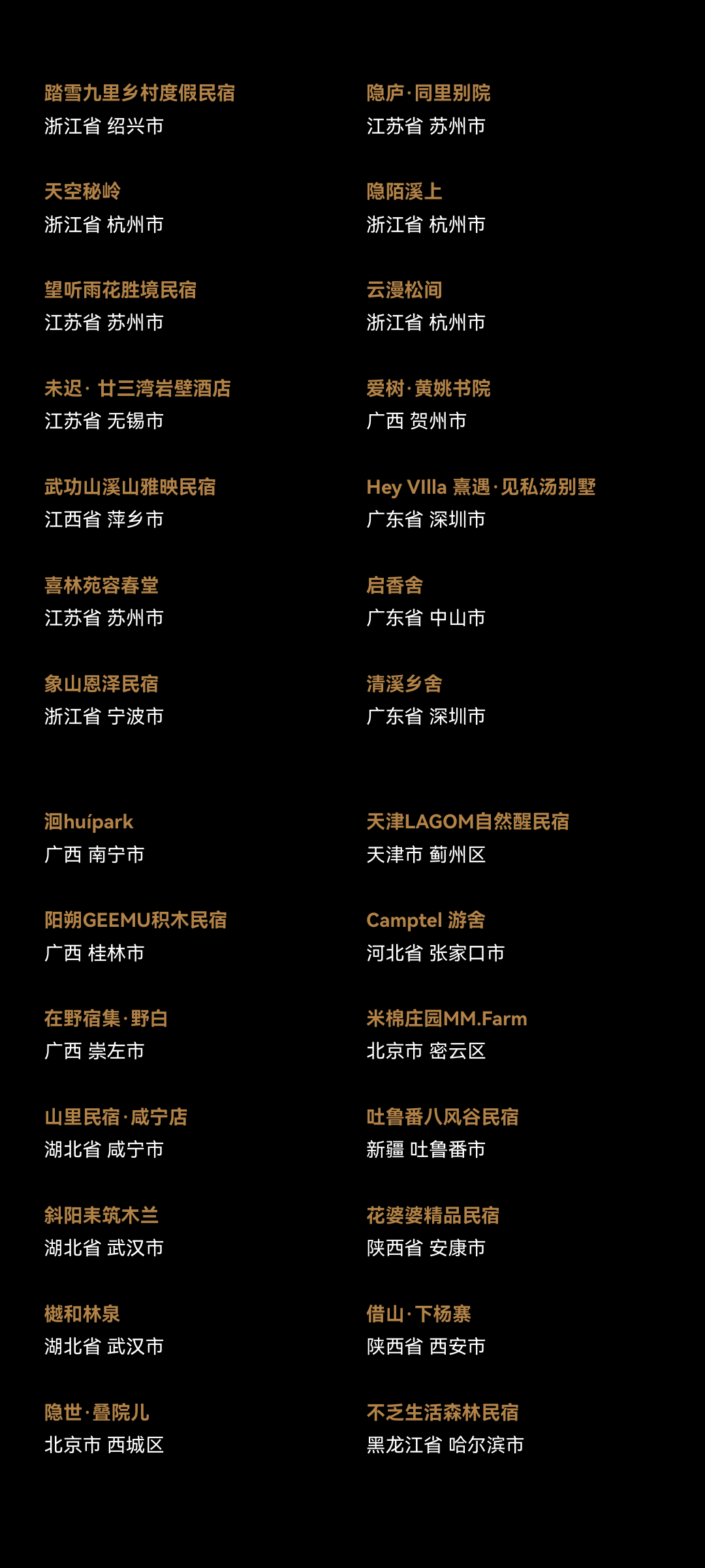 他们当中有度假酒店、精品民宿,也有精致露营地。他们在中国别样的自然景观与人文环境之中,遗世而美好。