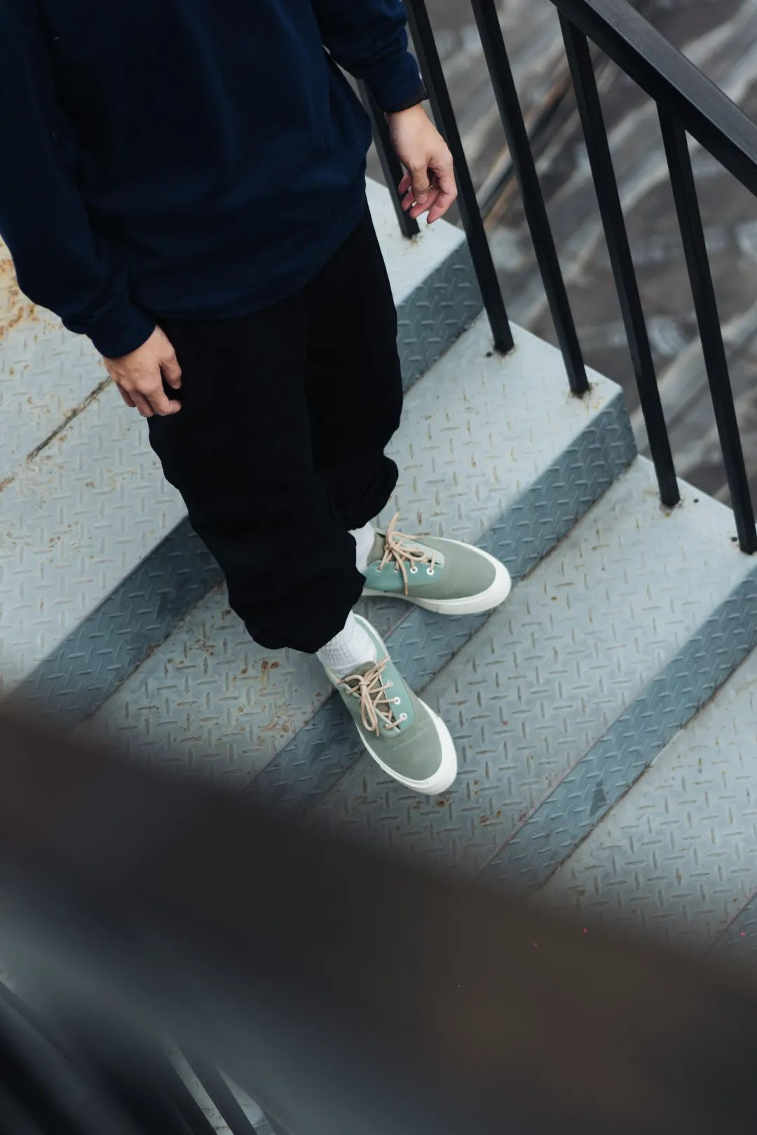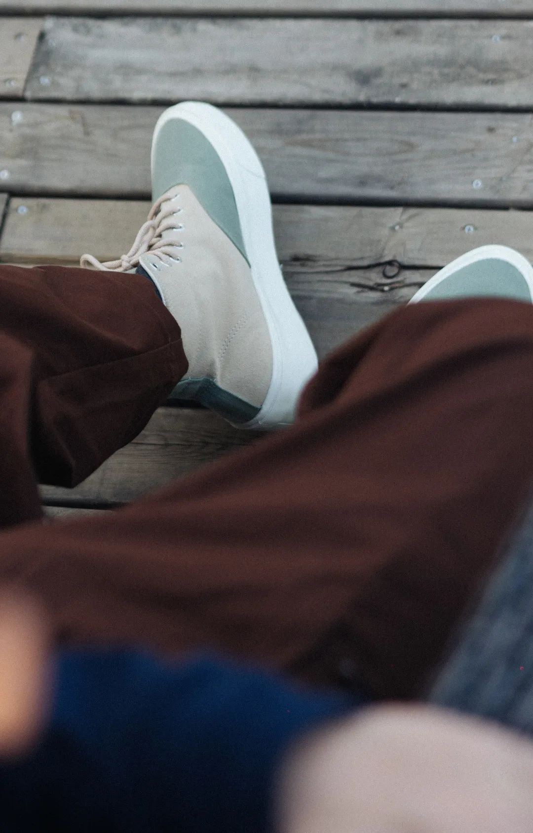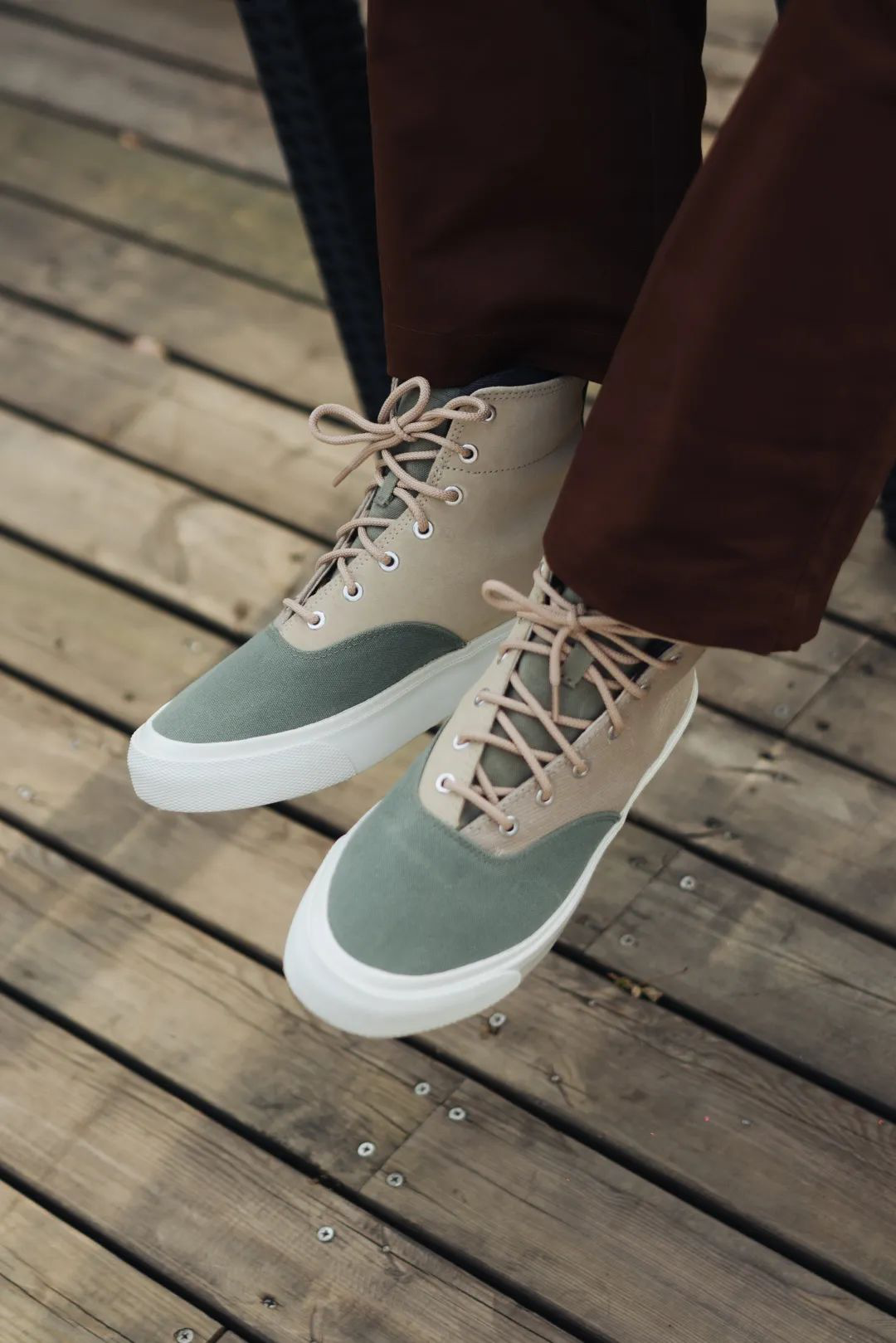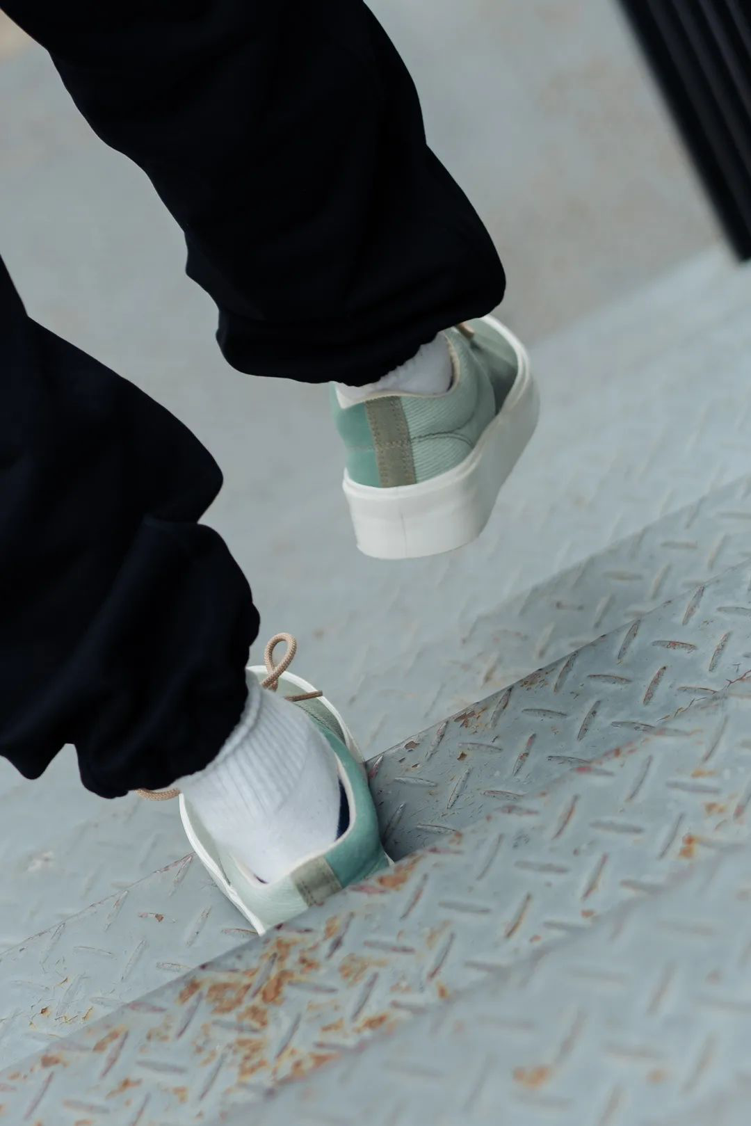 鞋面使用深浅不一的绿色和棕色,结合麂皮、灯芯绒、帆布等材质的不对称拼接,创造出丰富的视觉层次,而高低帮的设计也为日常穿着搭配带来了更多的选择。