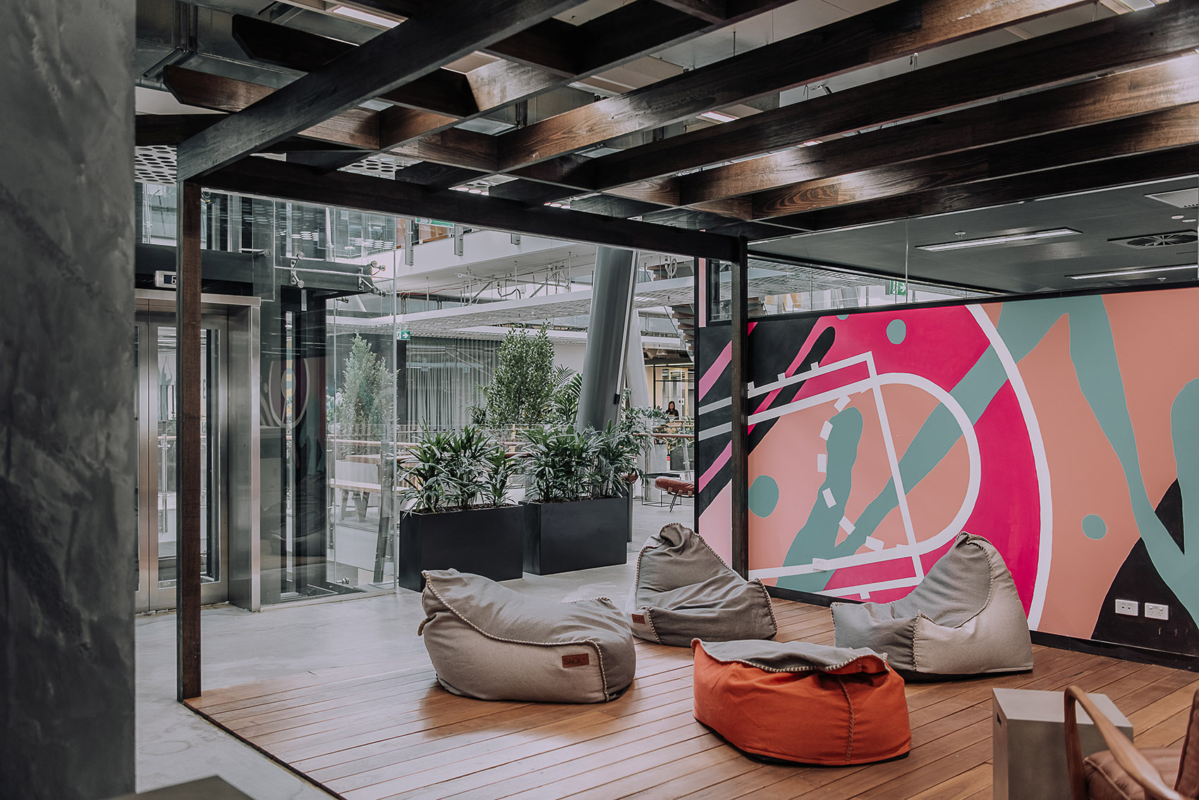 设计团队所面临的另一项挑战是如何将这个4,000平方米的老旧且呆板的办公空间转变为一个宽敞舒适且较为凉爽的工作场所。最终,他们在空间中布置了一系列“居家风格”的家具和当地的艺术品,从而营造出一种更为轻松的都市化氛围。