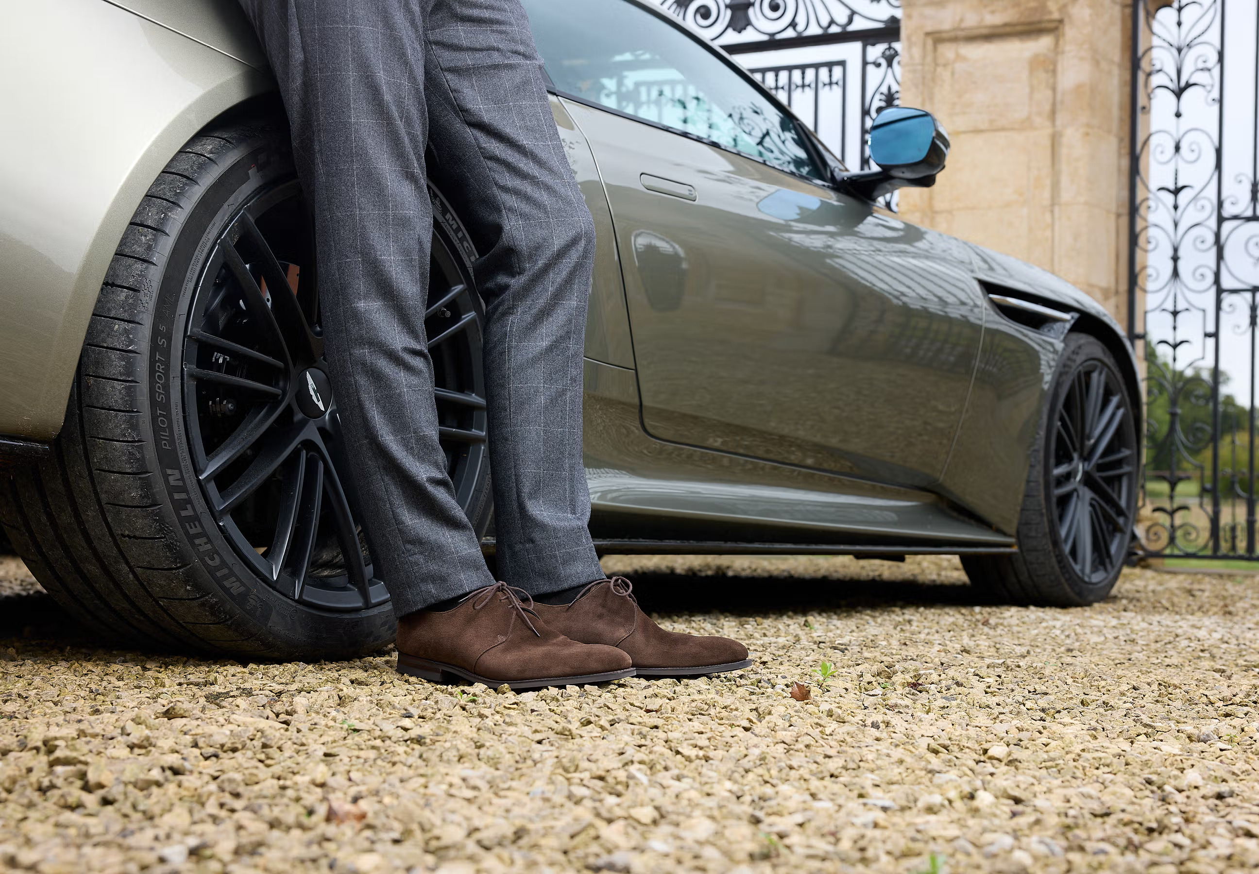 搭配阿斯顿马丁拍摄就显得很英式